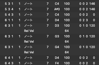 書き出されたノートのすべてにRel Vel自体は再設定されているようなのですが、ノートの長さを再調整するのは、同じ譜面を再度打ち込むのと同じく手間がかかります。