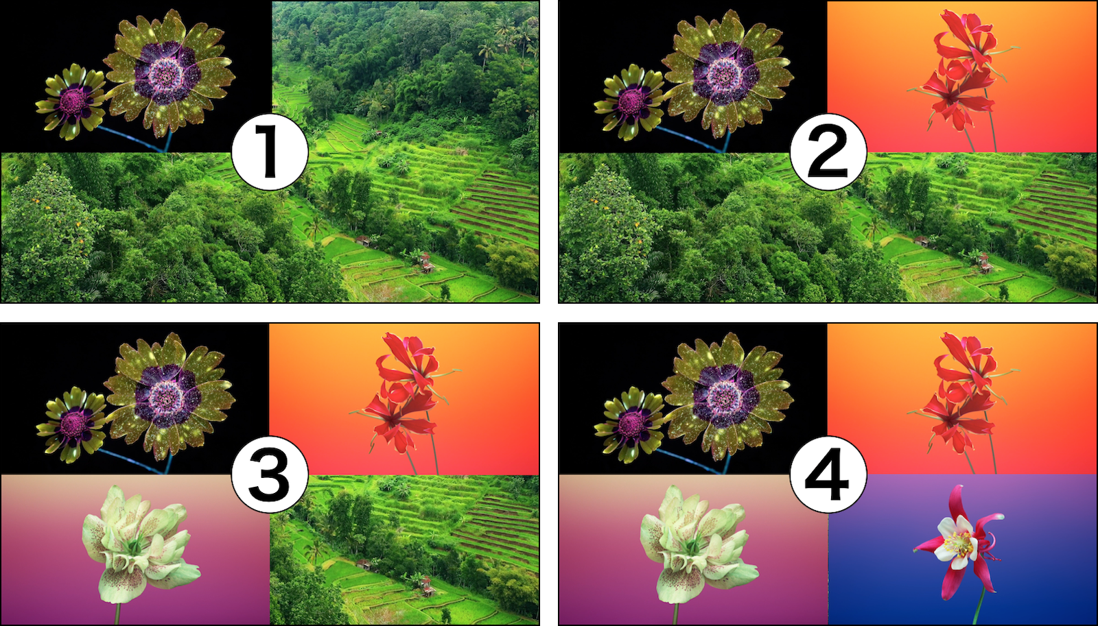 手元に有る4つの HD 動画(1920 x 1080)を統合し、表示上4分割になっている 4K 動画にしたい。