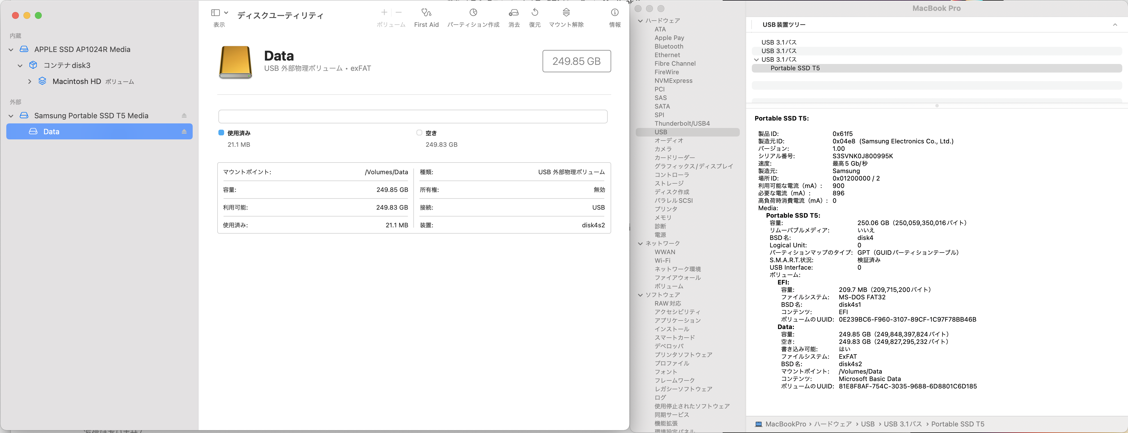> exfat でフォーマットしたSamusung T5