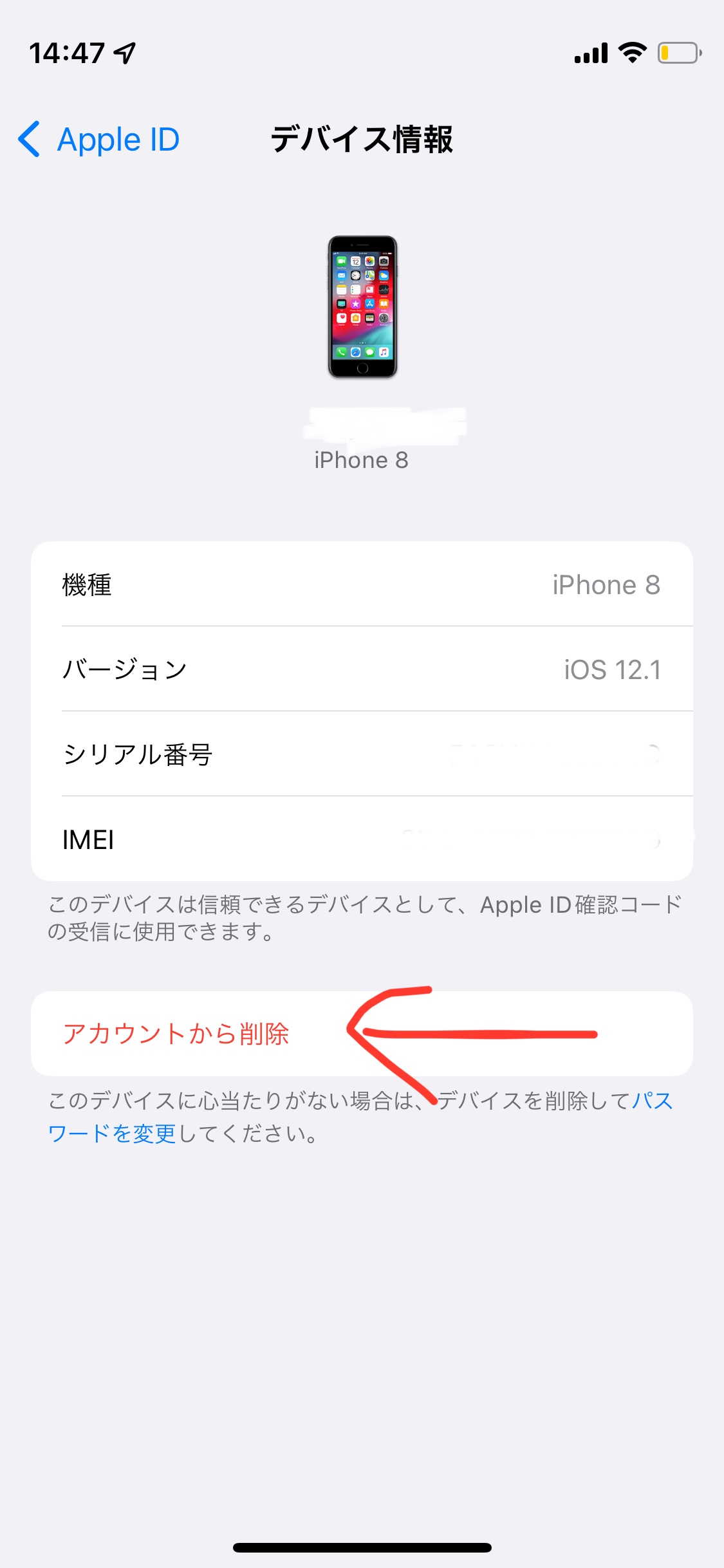 この削除は(Apple IDの)アカウントから削除というだけで、iphone 8の中身が消えるわけではありません。