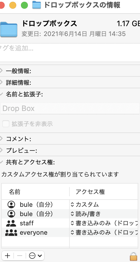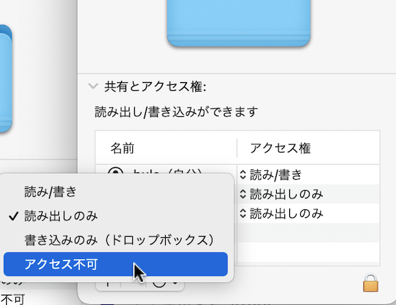 everyoneの、アクセス権を変えると、