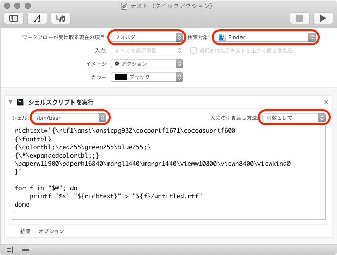 「シェルスクリプトを実行」アクションの中身はこんな感じでも良いかも。