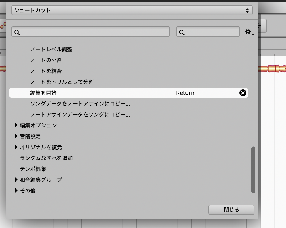 melodyneの環境設定でトランスポート系のショートカットは一見するにサイクルモードオン/オフしか見当たらないのですが(ユーザーが作成できる?)…。