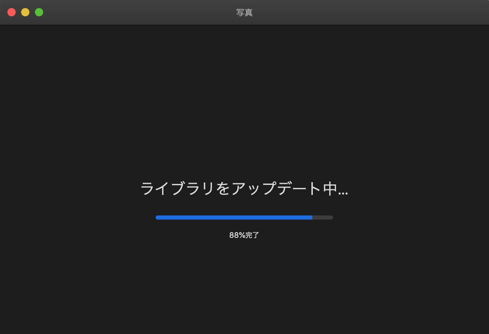 表示される場合は、「iPhoto Library.photolibrary」を選択して「ライブラリを選択」ボタンをクリック すると、下の画像の様に、ライブラリのアップデートが開始されますので、完了するまで待ちます。