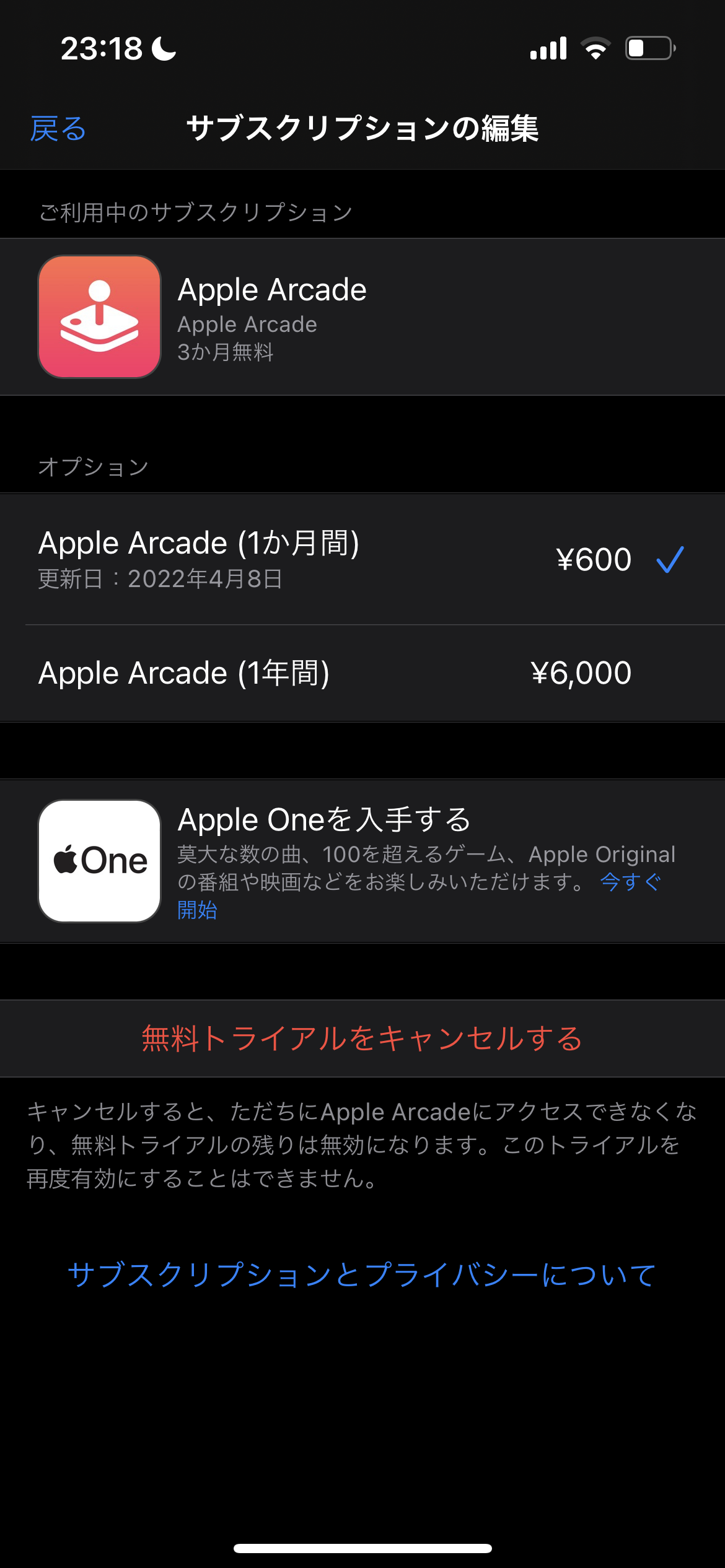 すなわち今は “3か月無料” の期間中。そして “4月8日” になると “1か月間” を “¥600” の料金で利用する契約に自動更新を選択中。