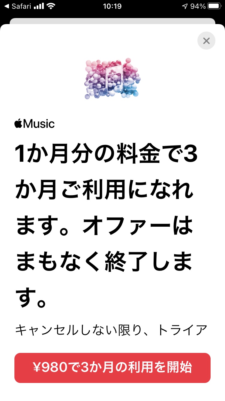 アップルミュージックのクーポン