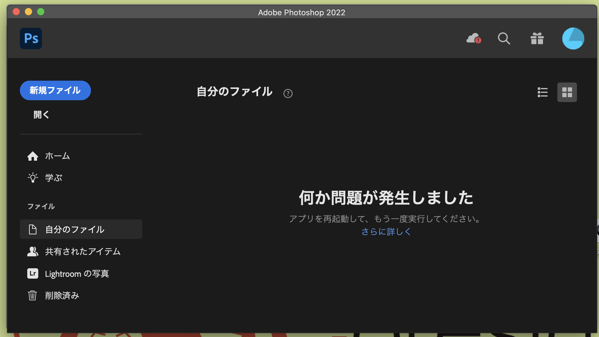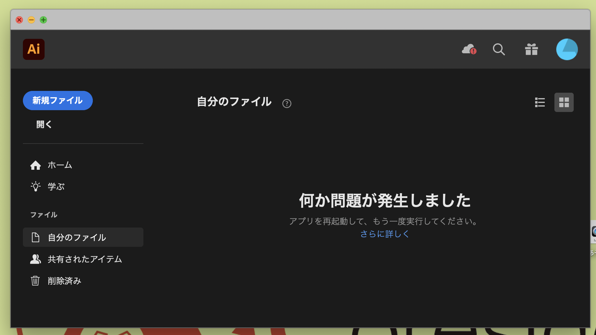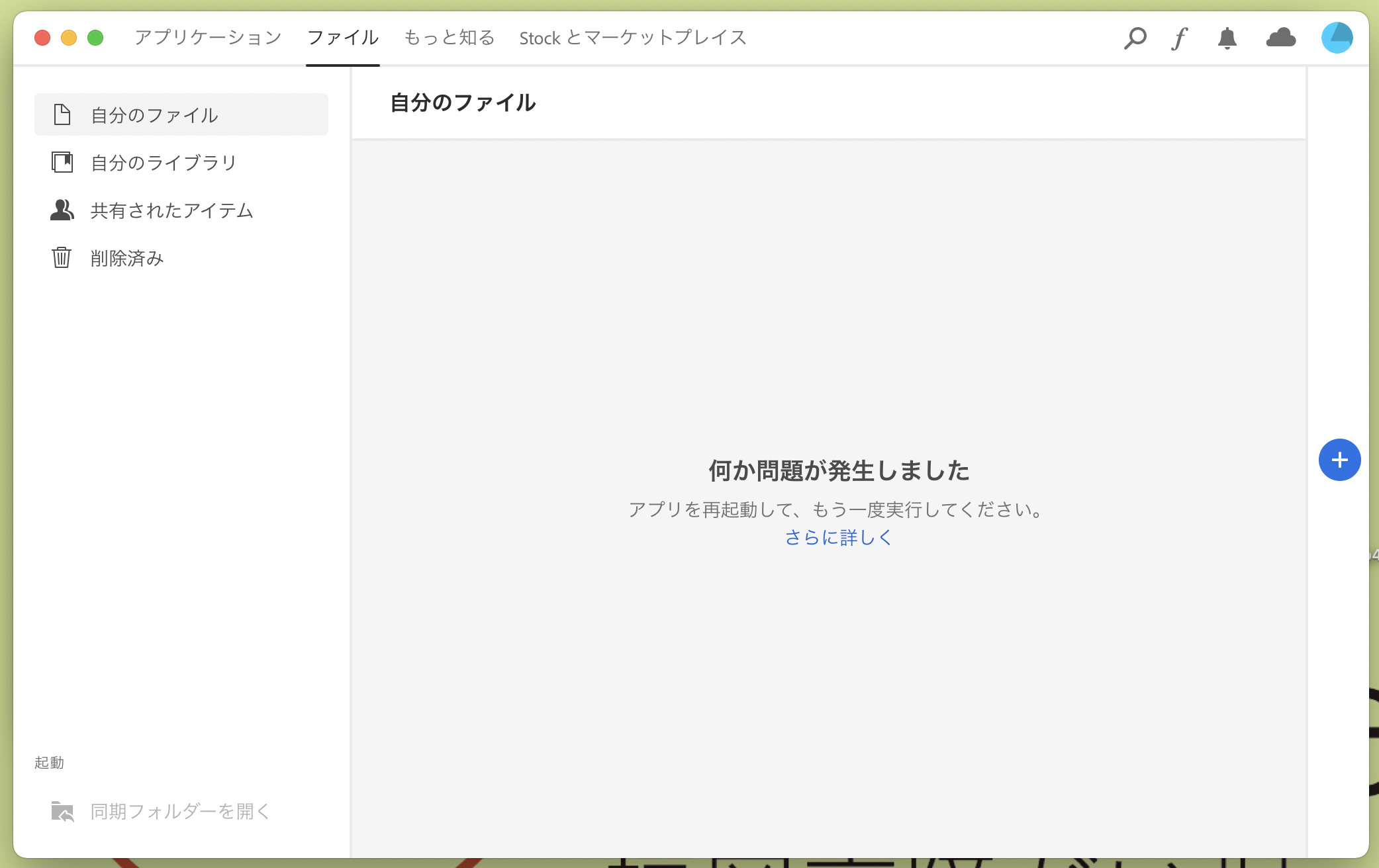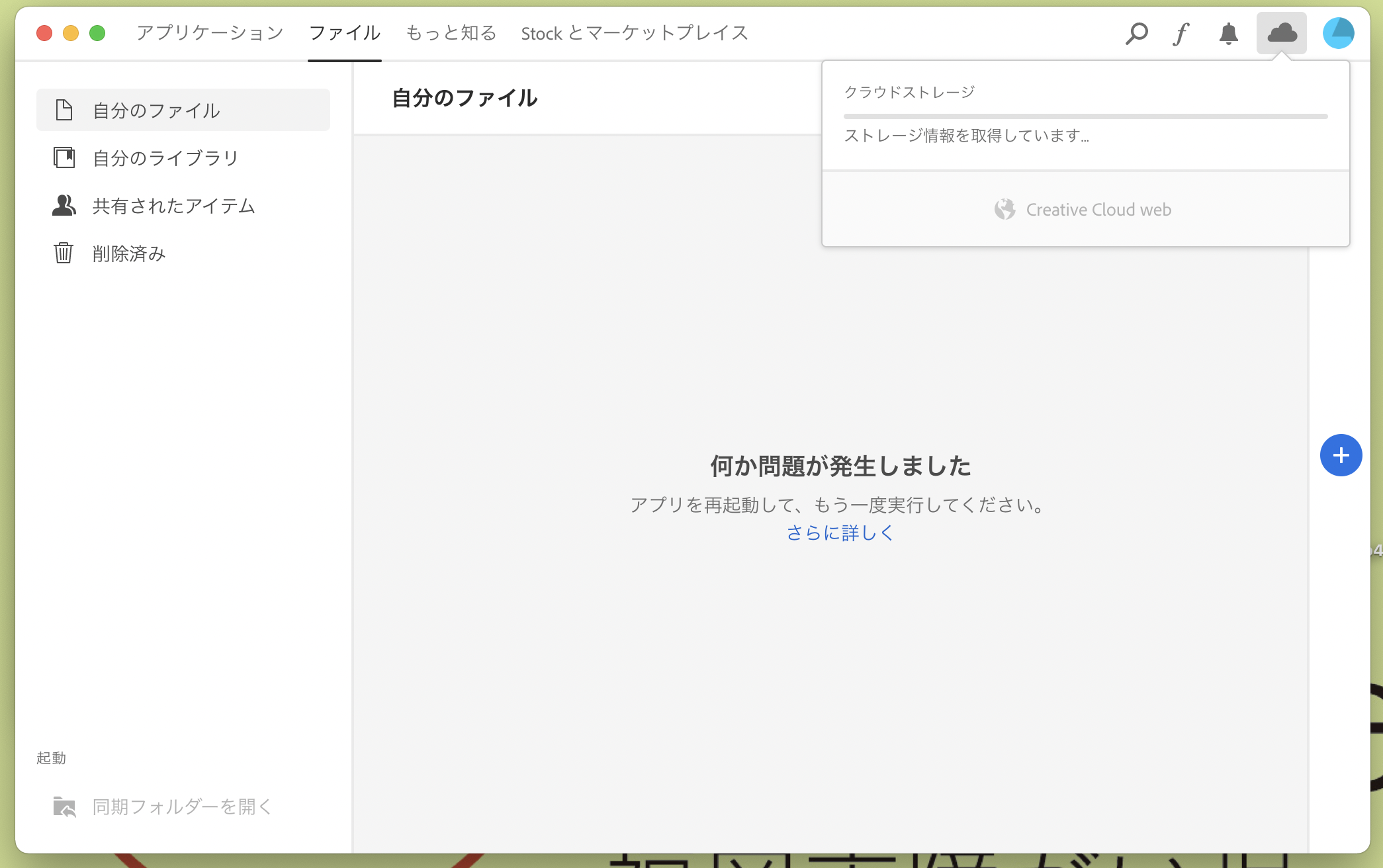 Creative Cloudのアプリでファイルにアクセスができない状況ですが、WebからCreative Cloudを開くと問題なくアクセスができています。
