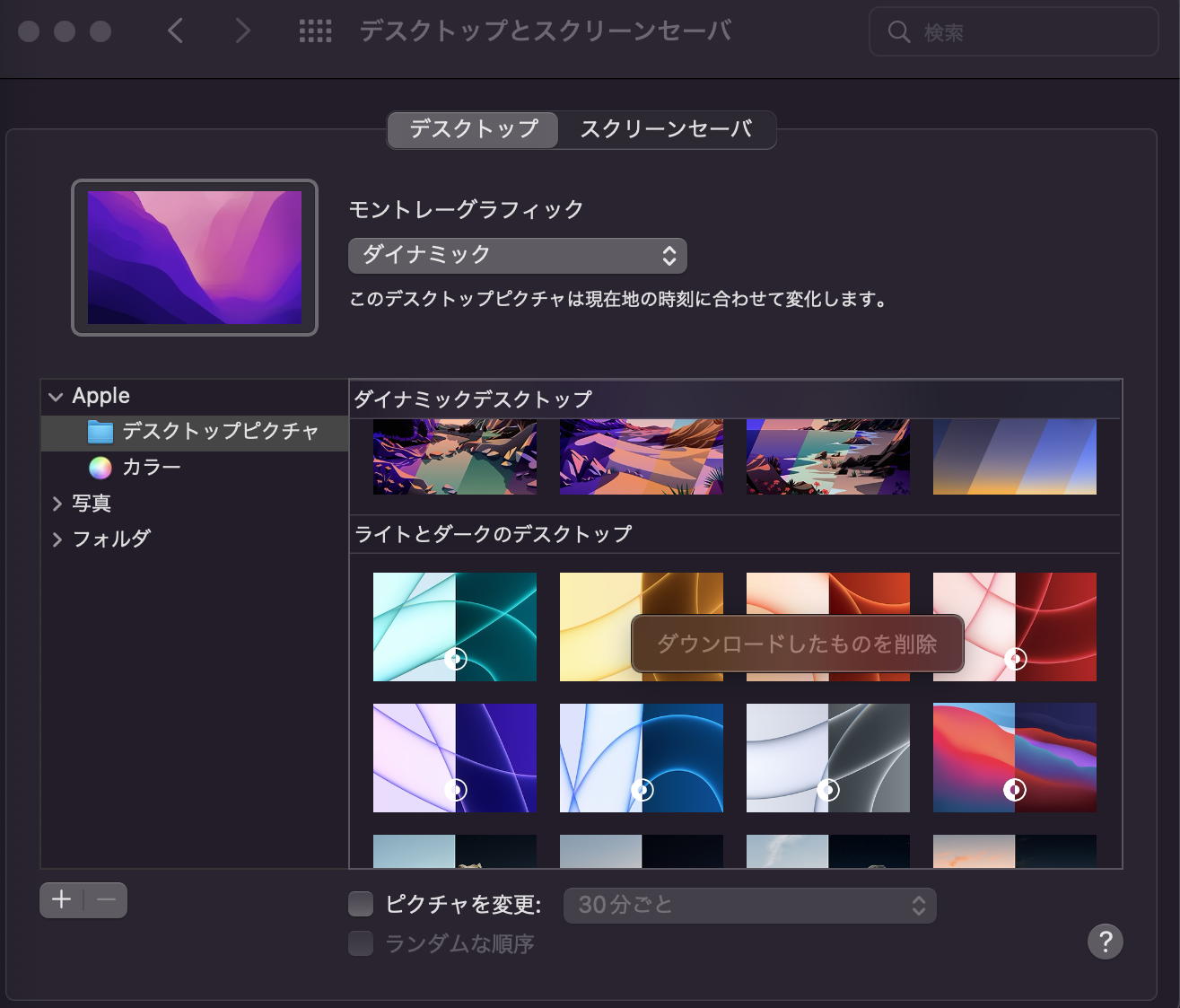 MacBook Air のダウンロード済みのデスクトップピクチャの削除について、情報をお探しということですね。