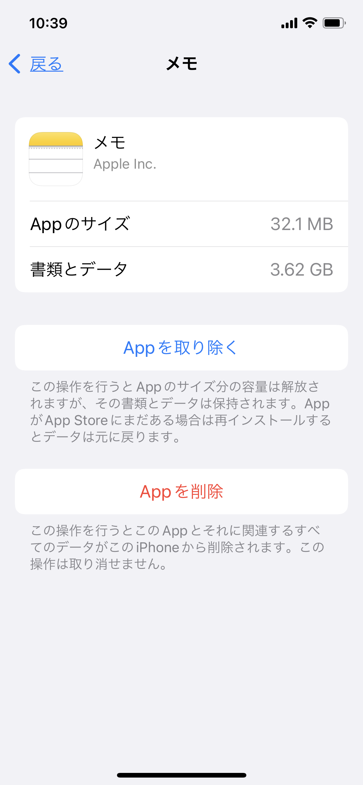 メモ App のストレージ使用量が多くお困りということですね。