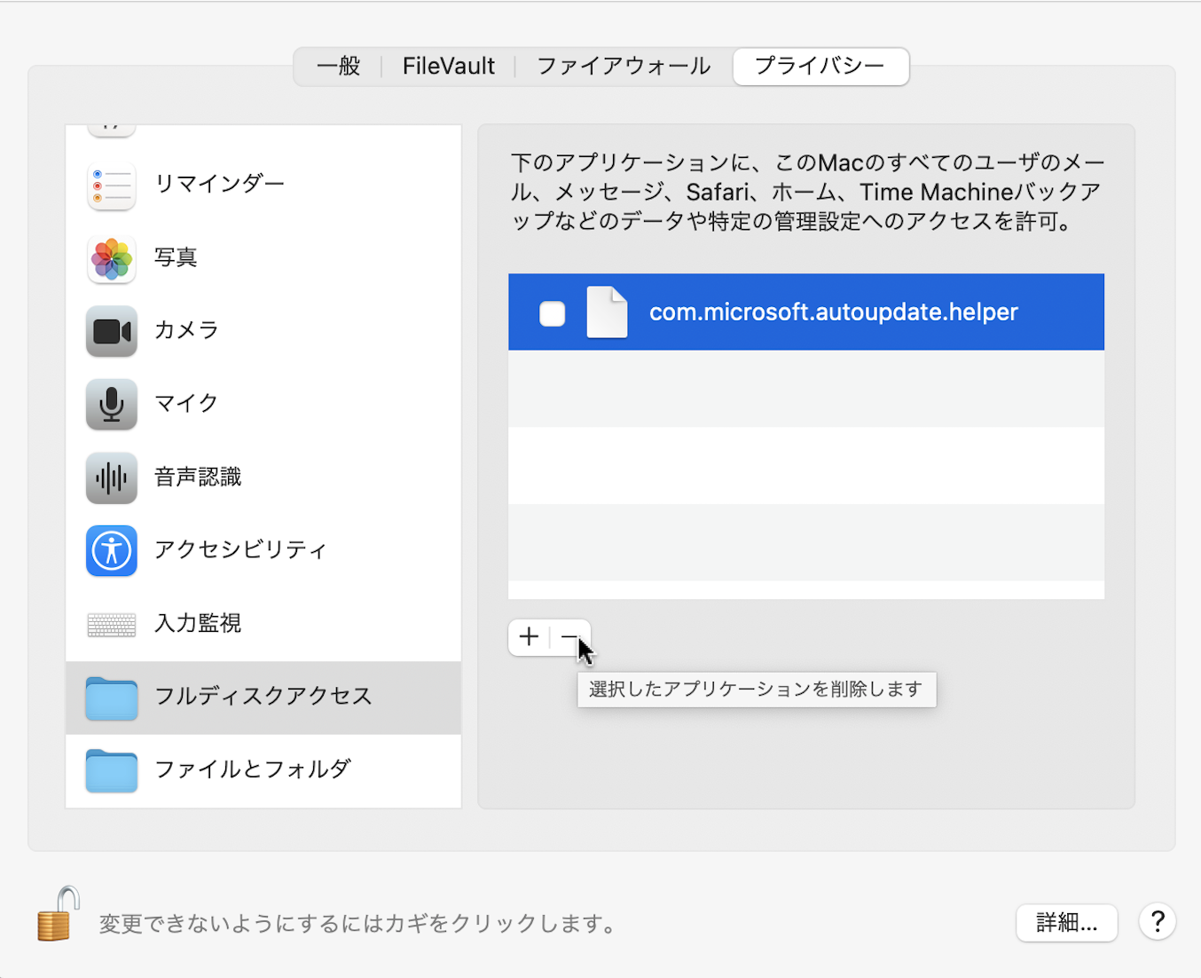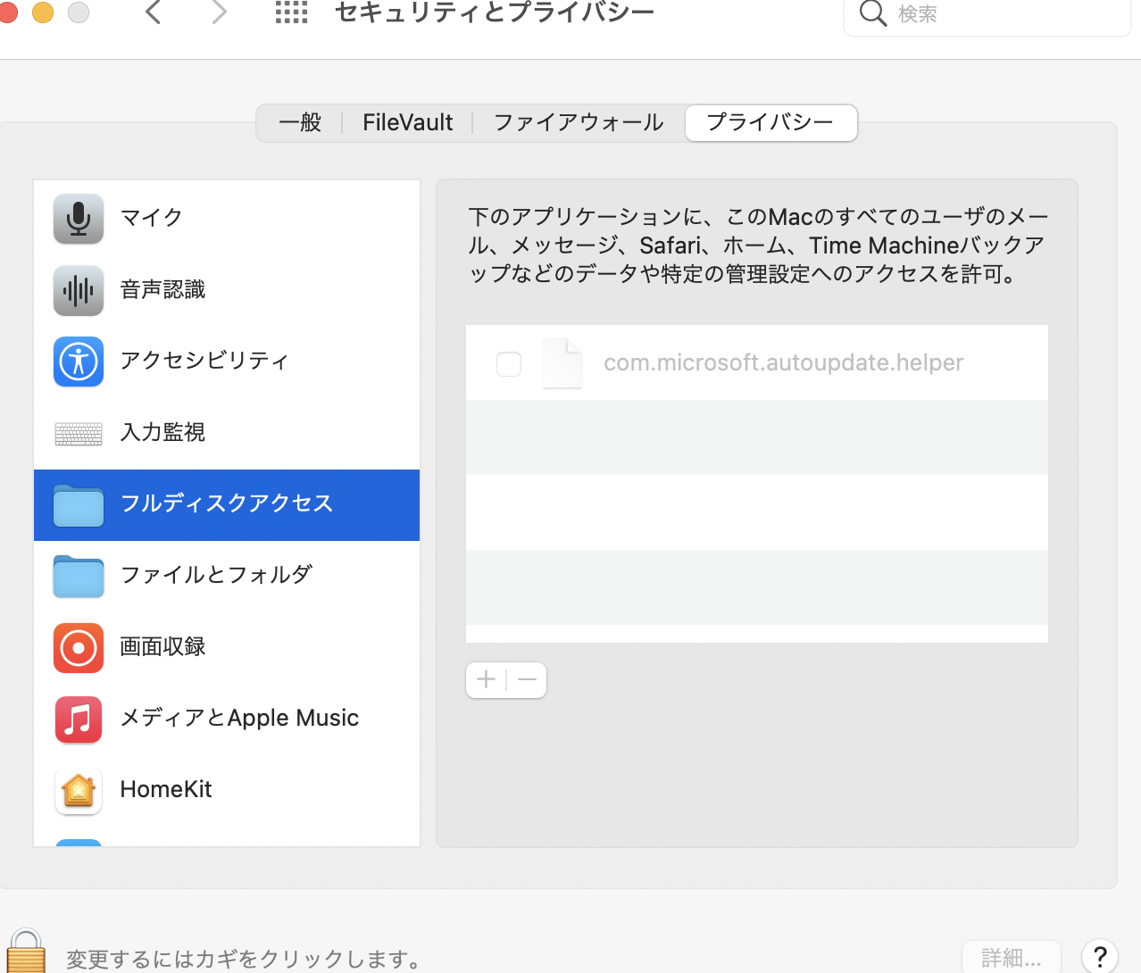 com.microsoft.autoupdate.helperが、許可を要求しただけでここの一覧に出るという事でしたが、