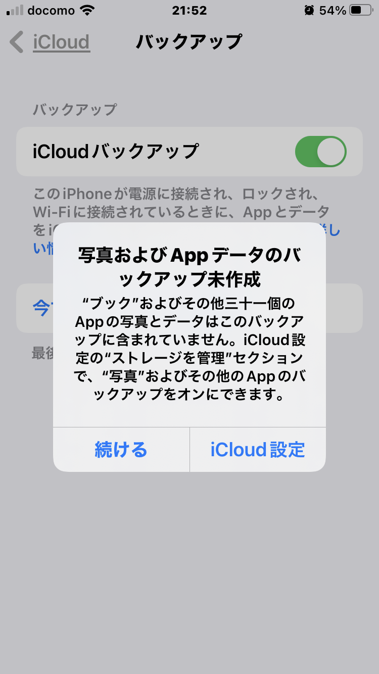 iPhoneの使用済み容量をバックアップするのに十分なiCloudの空き容量がないと、