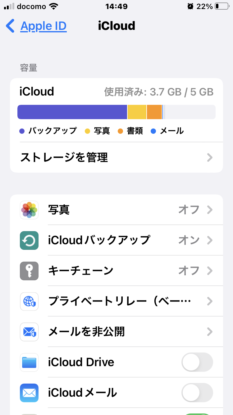 写真のデータ量を考えたら、iCloudバックアップが3GB程度で済むはずがないのだけど。