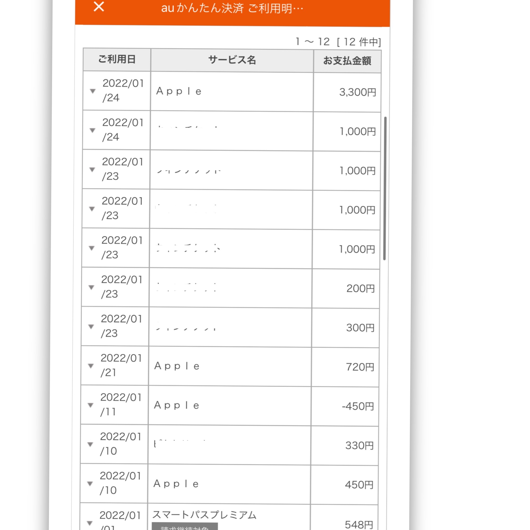 auかんたん決済でAppleから良く請求が来ています。