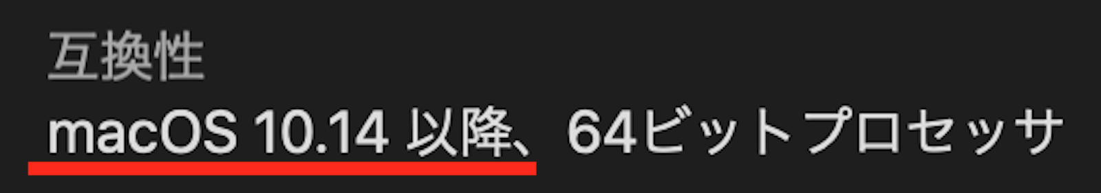 但し、macOS Catalina(10.15.x)以降にアップグレードした場合は、32 ビットアプリケーションや、「iWork '09(「Numbers(2.3)」、「Pages(4.3)」、「Keynote(5.3)」)」、「iPhoto(9.6.1)」、「iMovie(9.0.9)」、「GarageBand(6.0.5)」、「Adobe CS6」等は使用出来なくなります ので、使用されている場合はご注意下さい。