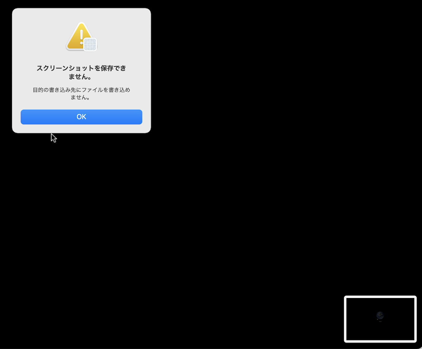 スクリーンショットを保存できません目的の書き込み先にファイルを書き込めません。と出ました。