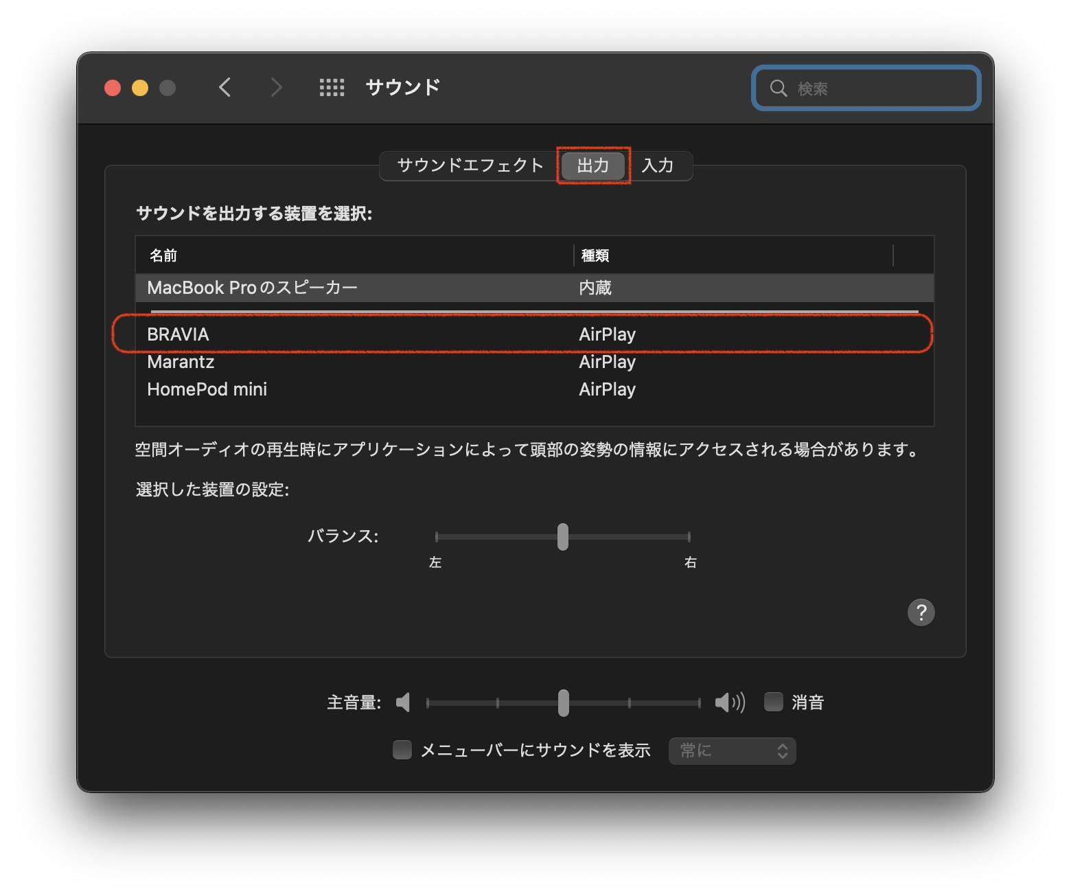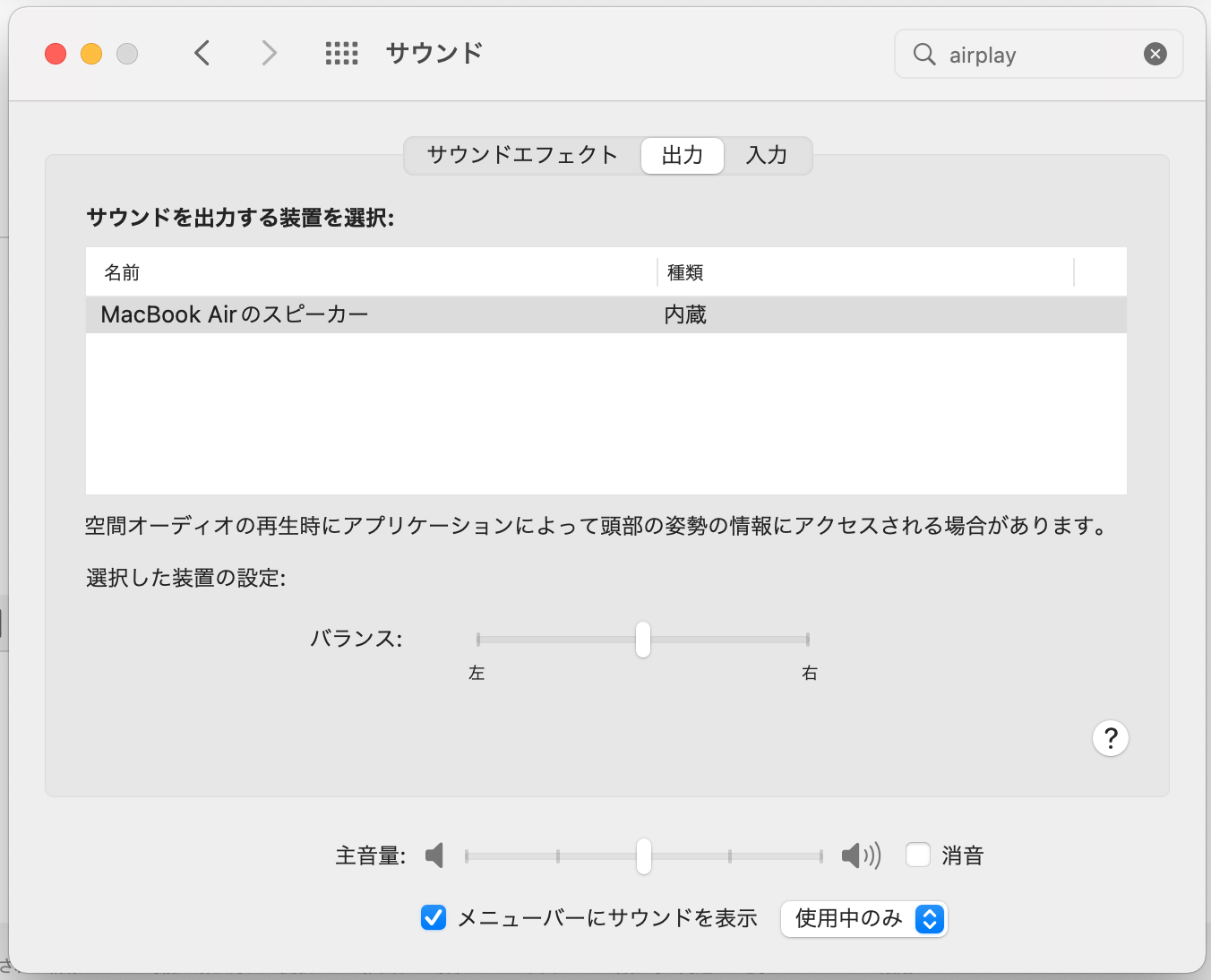 いつの間にかAIRPLAYが表示されなくなっていました。