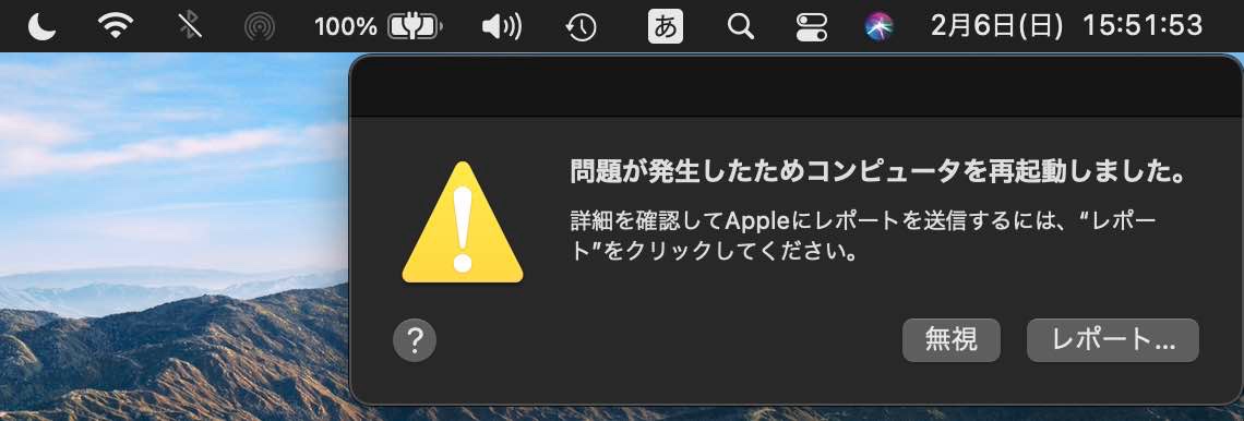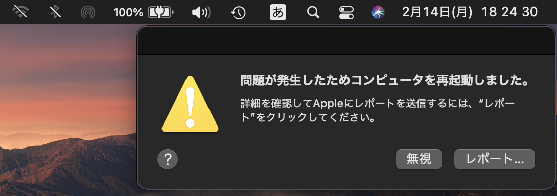セーフブート、SMCリセット、NVRAMリセットをして、様子を見ることにしましたが、