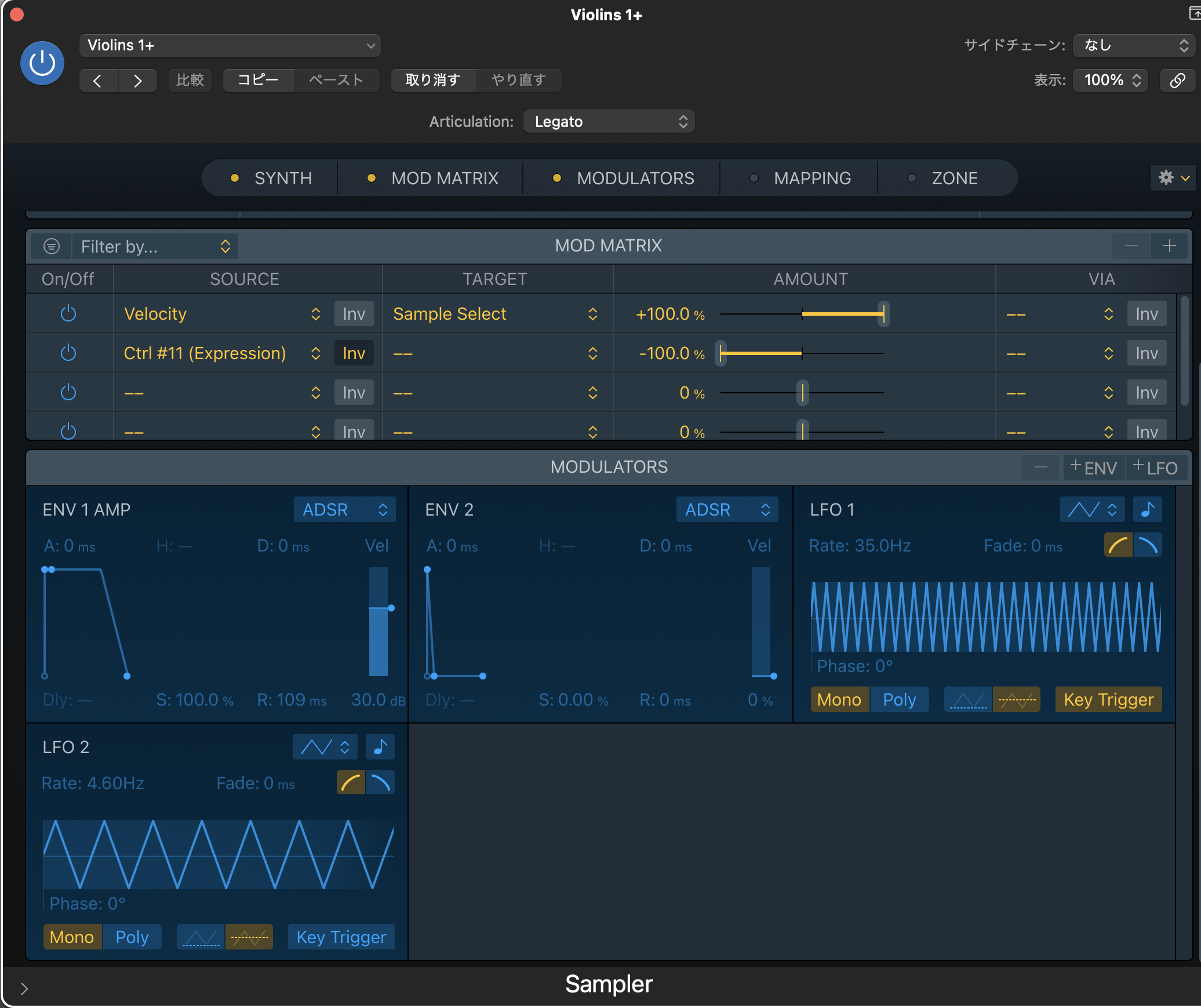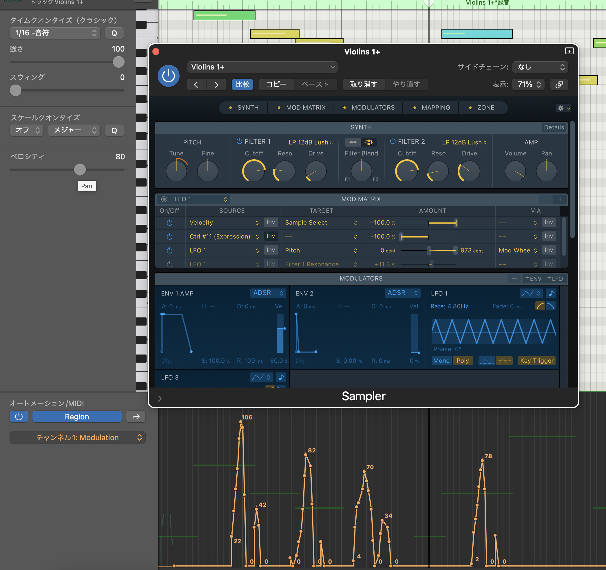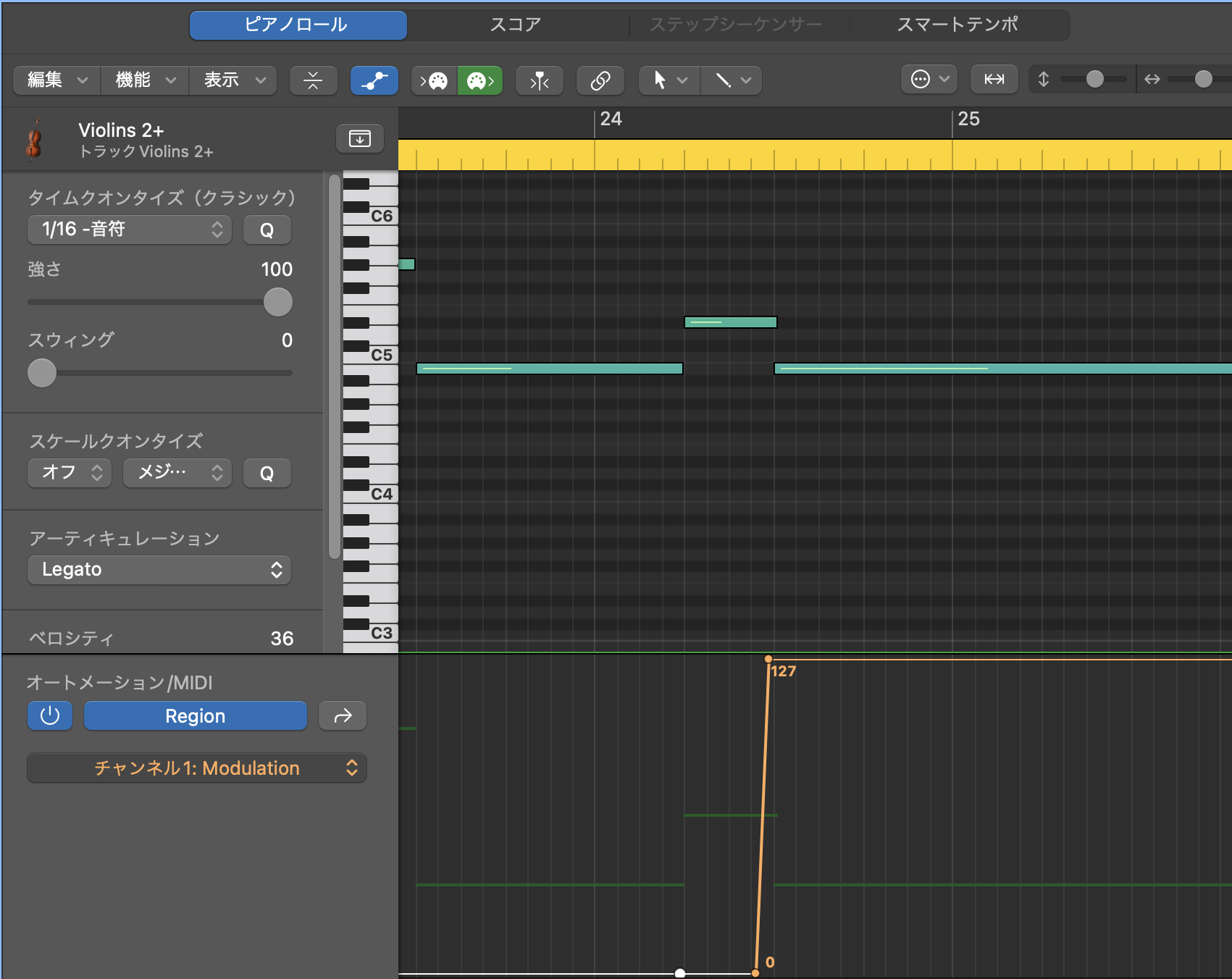 logicでストリングスを打ち込んだ際のビブラートの掛け方について