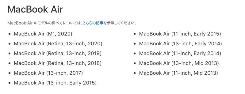 のページを下がっていくと、下記画像の通り、「MacBook Air (13-inch, Early 2014)」がありますので、
