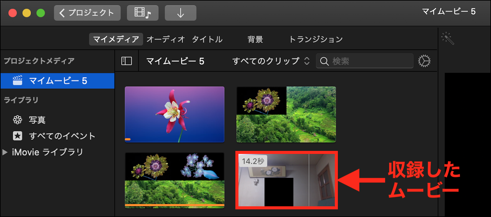 iMovieでの動画作成にFaceTime HDカメラを使って録画してもムービーファイルが作られません。