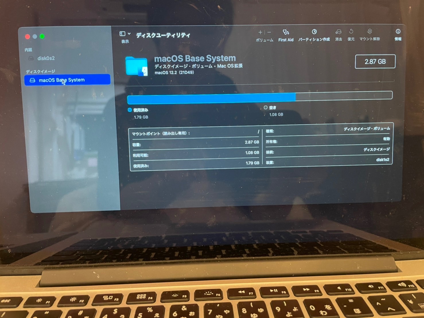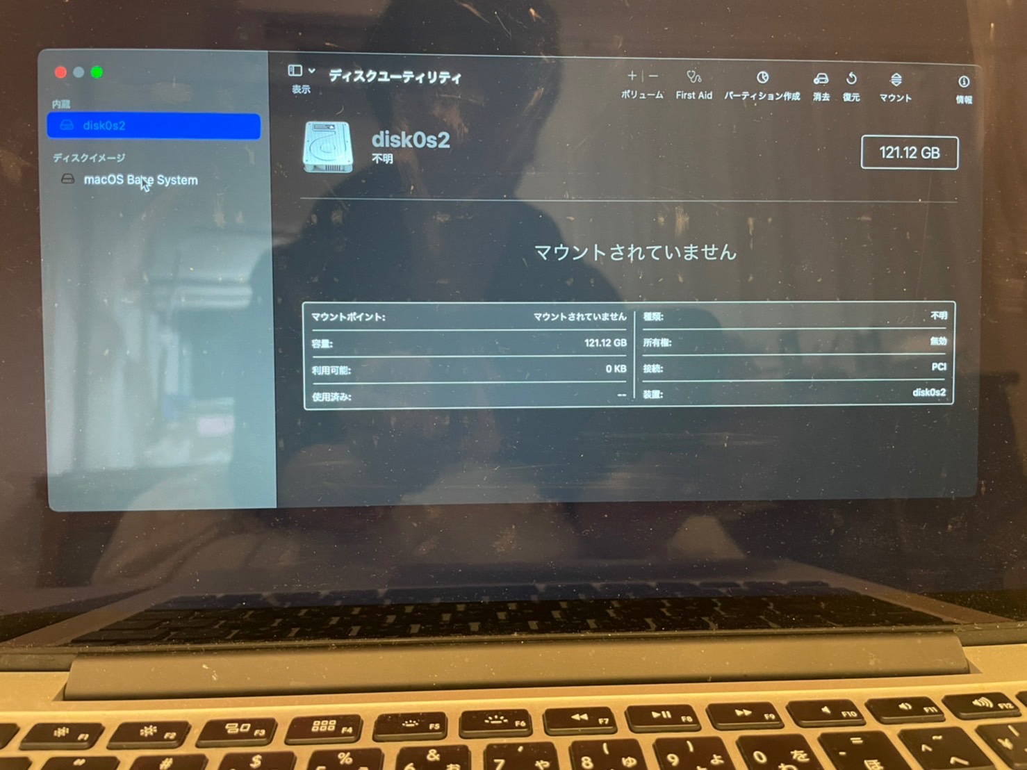 問題のMacの方をご教授いただいたoption + command + rで起動したところ添付した写真のような画面になりました。