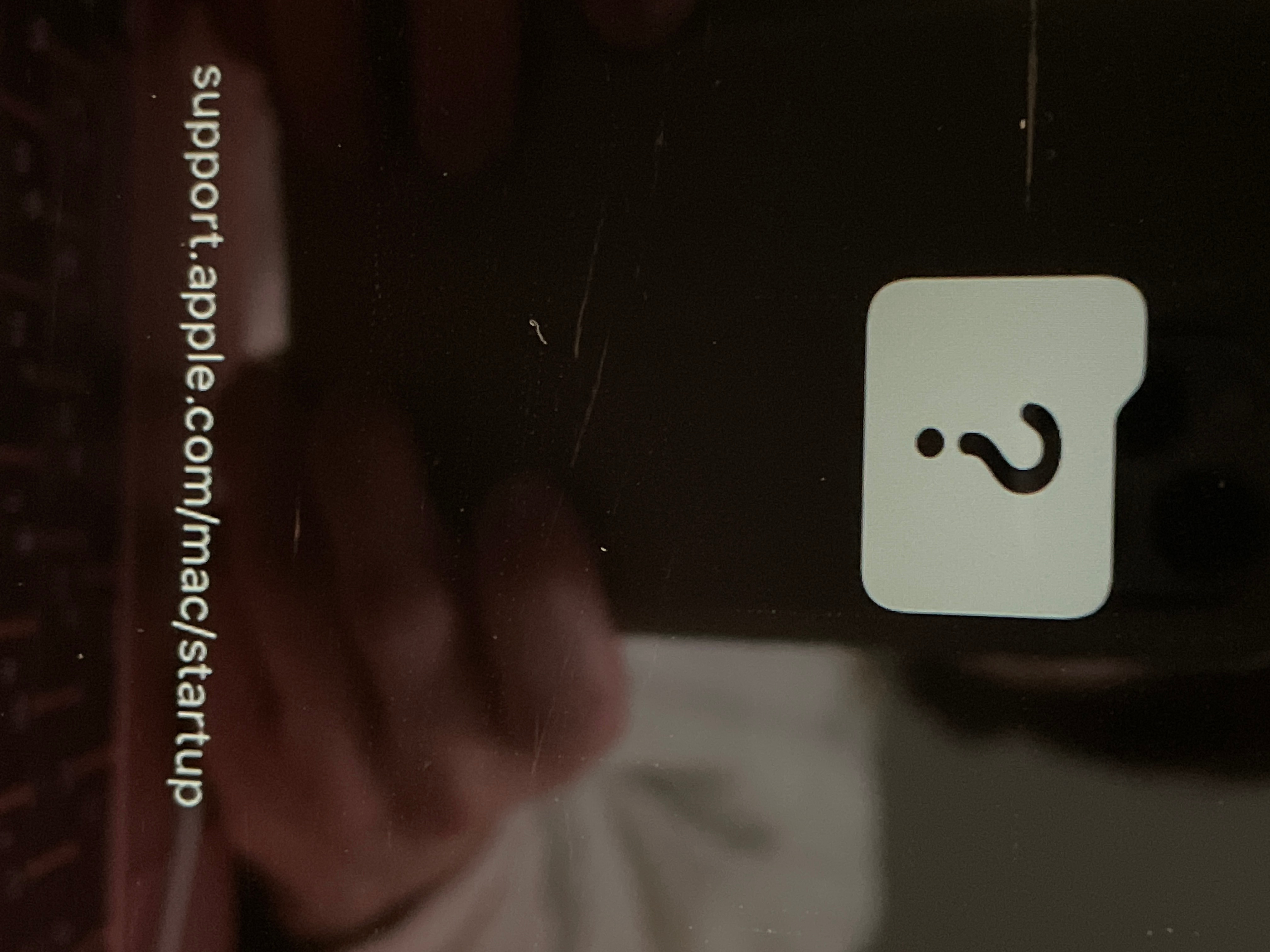 起動時option + command + rとしてインターネット復元にしたら良いです。最初choose networkと出てwifiに接続することを要求されるかもしれませんが、その時にはいつも使ってるssidとパスワードでwifiに接続してください。そうすると、真っ黒な画面に回転する地球儀が出ます。しばらく待てば、macOS復旧ユーティリティの画面になります。montereyだと、途中に、管理者ユーザの選択とパスワード入力が求められるかもしれません。入力しても良いですが、起動時?が出るような状態だとディスクのフォーマットする方が良いので、復旧のメニューをクリックしてMacを消去にしてもよいです。そうすれば、ディスクの中身を全て消去して、初期化してくれます。復旧ユーティリティが立ち上がったら、macOSの再インストールにして、macOSを再インストールすれば良いです。再インストール完了後再起動しますので、画面の案内に従ってバックアップから戻せば、元通りになります。