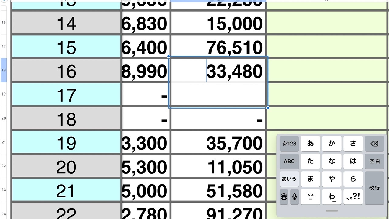 入力中に下のセルが消えてしまい、少しもやもやしてしまいます。