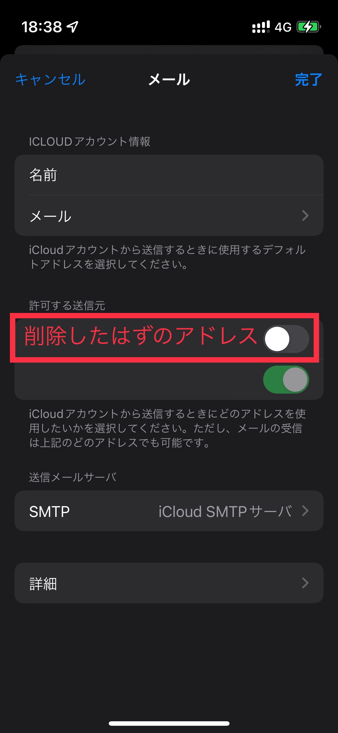 メールエイリアスを削除したのですが、許可する送信元には残ったままになっています