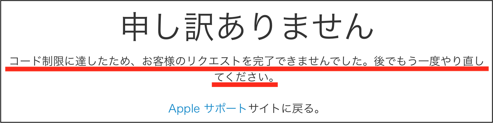 何度かコードを間違えて入力すると、セキュリティ保護の為、下の画像の様なエラーメッセージが表示されますが、このエラーメッセージが表示された場合、何度正しいコードを入力しても、同じエラーメッセージが繰り返し表示されます。
