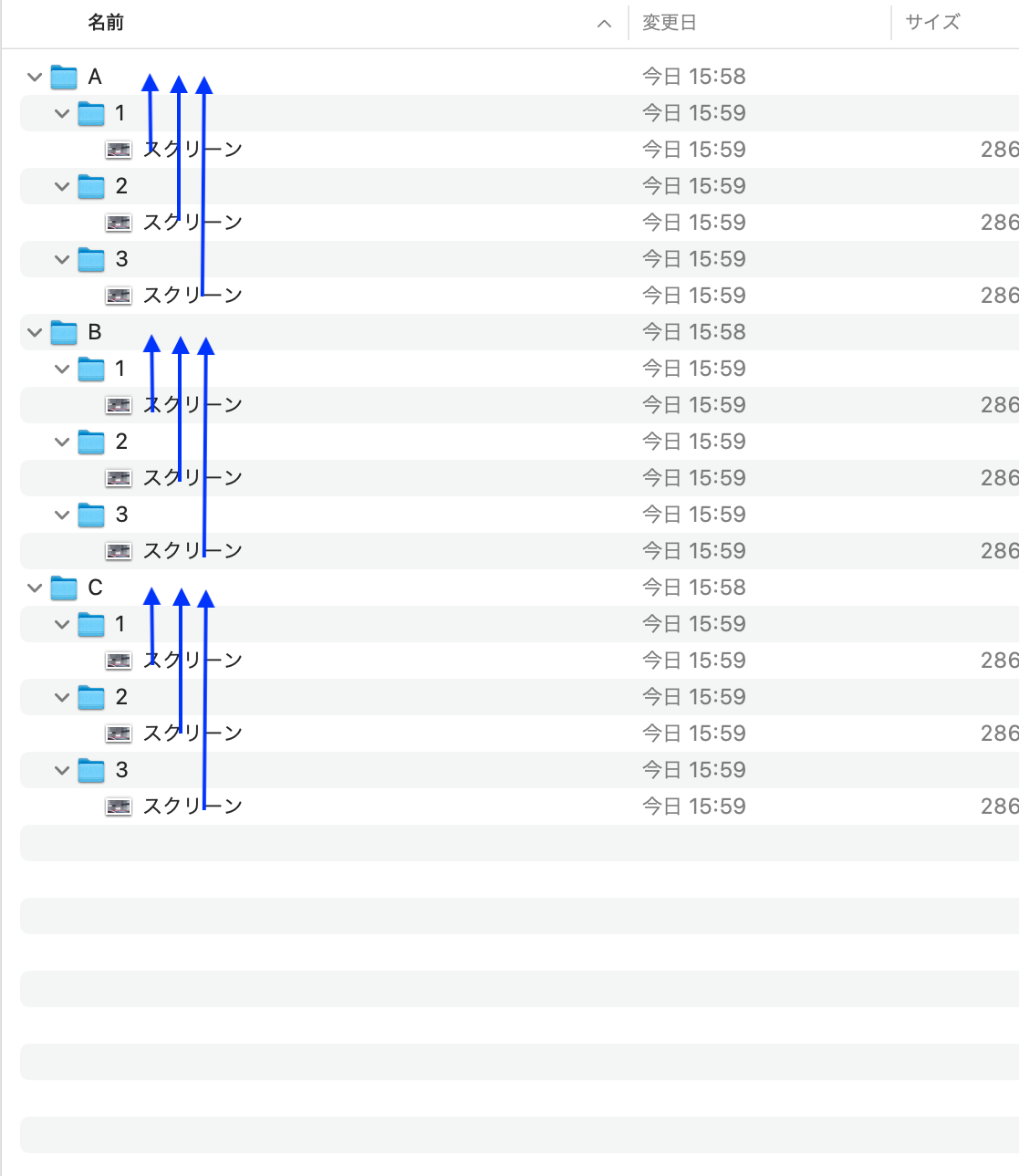 複数あるフォルダに入っているデータの階層を1つ上げたい