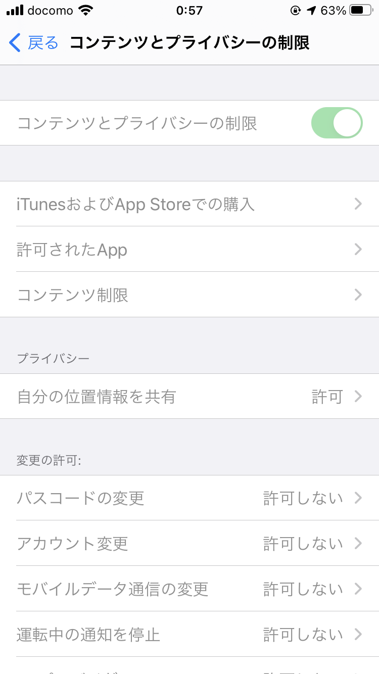 コンテンツとプライバシーの制限がグレーアウト、設定出来ない