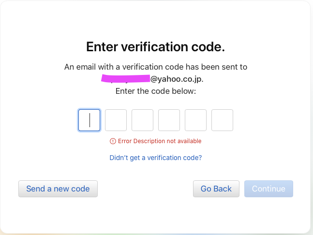 2は、「●●@yahoo.co.jp」を作って、新メールアドレス宛に認証コードを送ってもらえたのですが、何度やっても画像のようなエラーになって進みません。