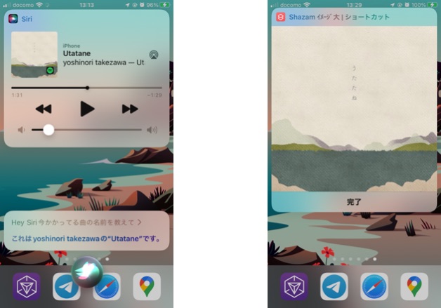 >こちらは、ショートカット名を「今かかっている曲名を教えて」で出来ると思いますが。