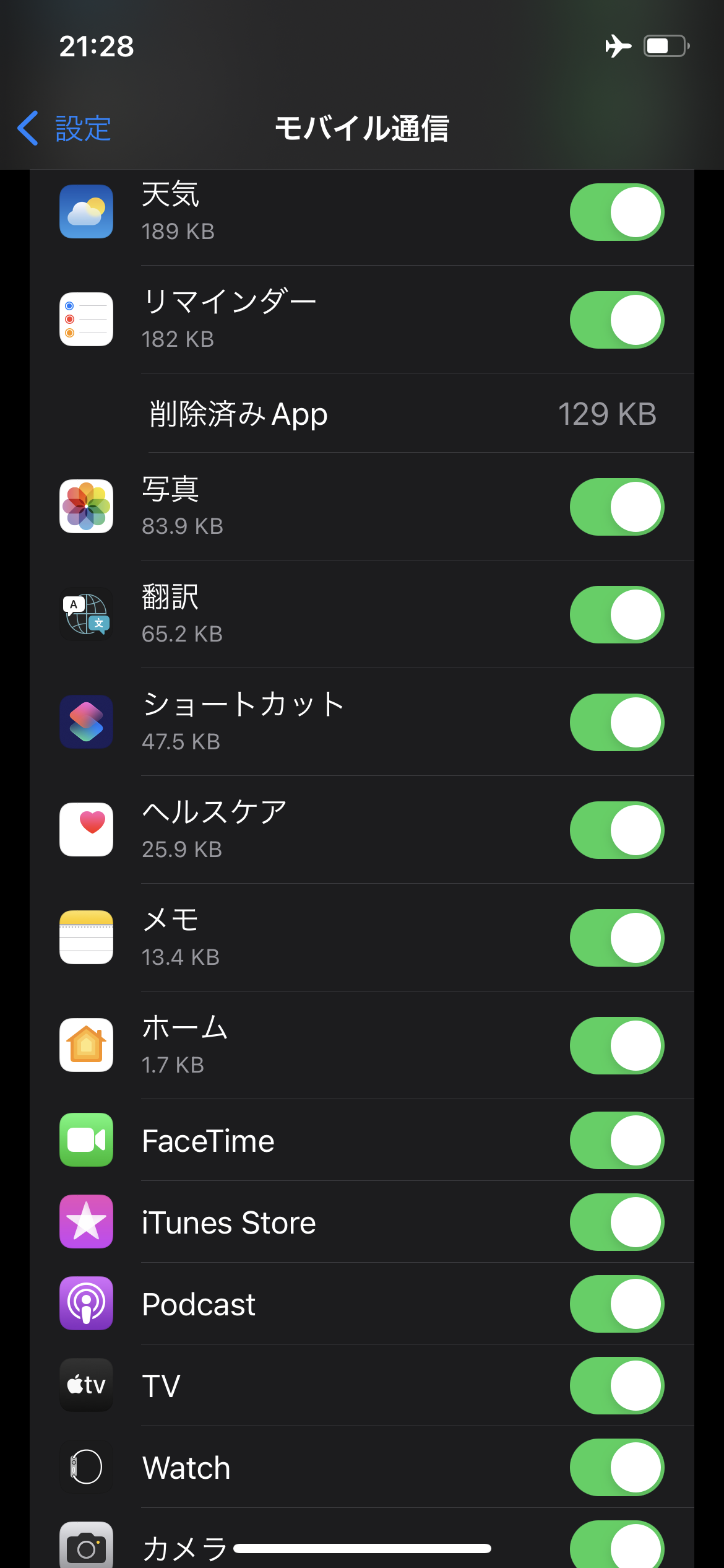 モバイル通信 アンインストール行なっていない状況で削除済みApp