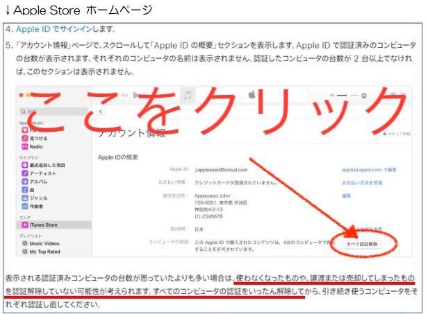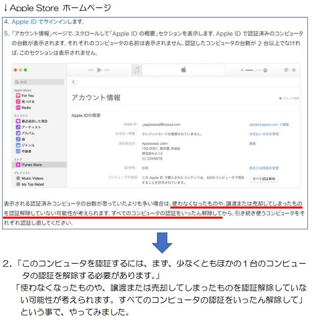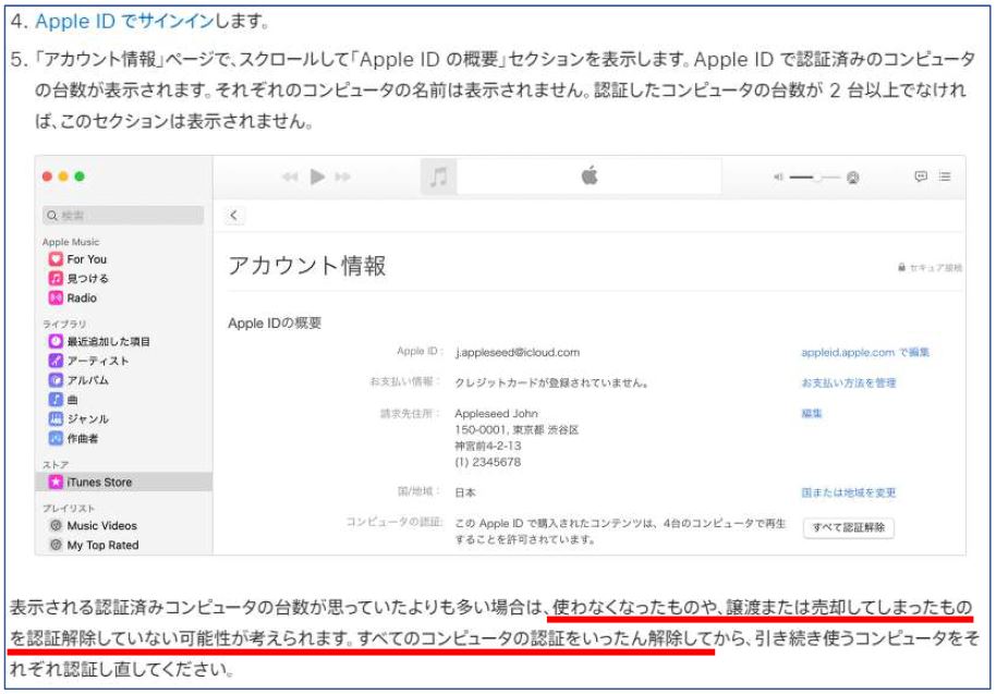 以前に所有していたコンピュータはすべて処分済みなので、5台のコンピュータを「すべて認証解除」しようと思っても、「アカウント情報」ページを開くこともできないので、どうにもならない。