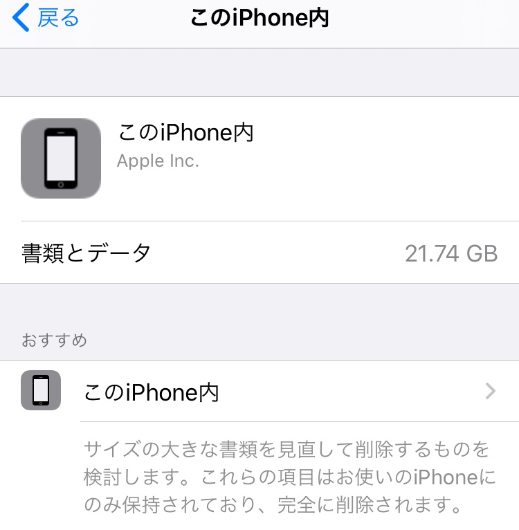 iPhone ファイルのデータを消しても「このiPhone内」から減らない