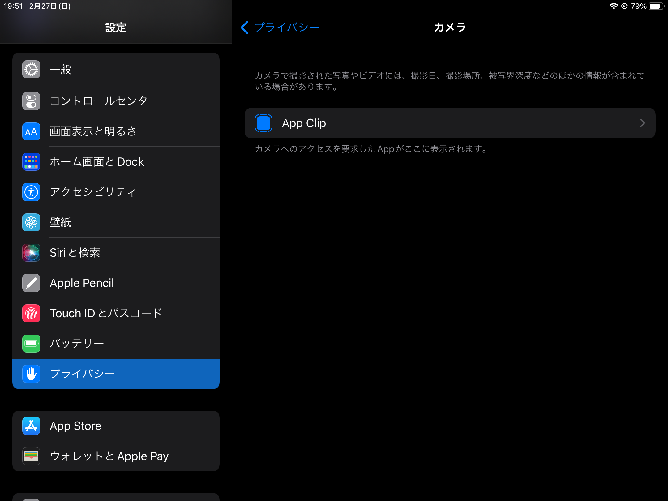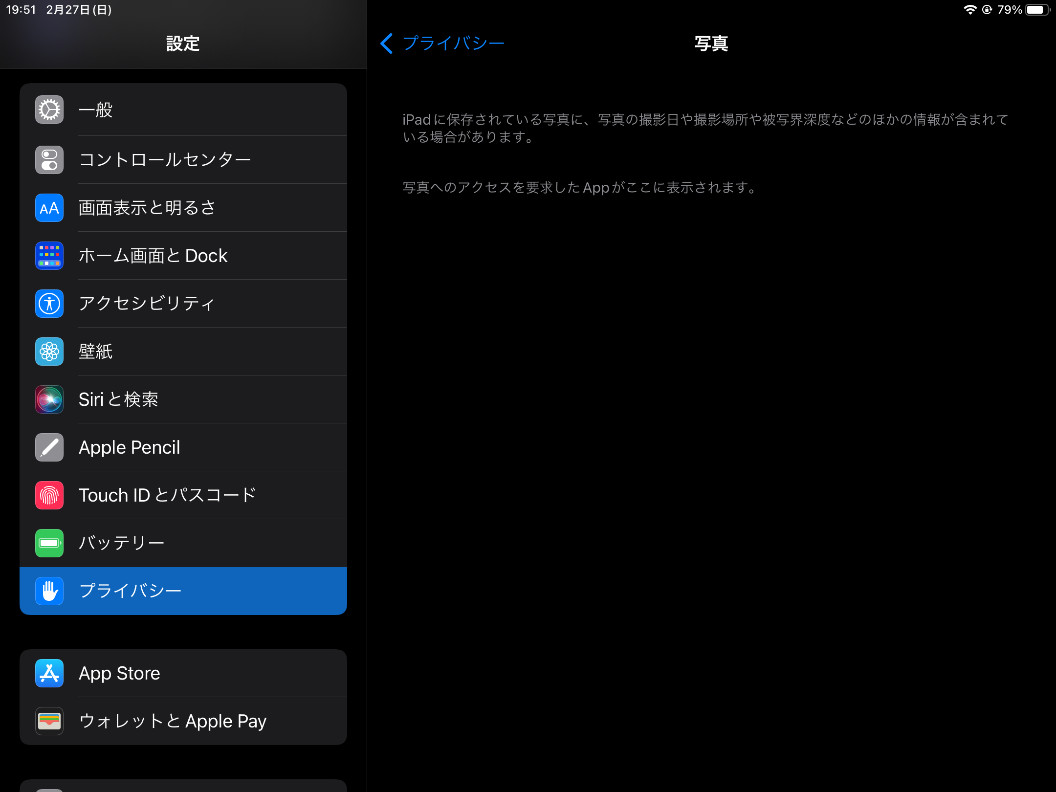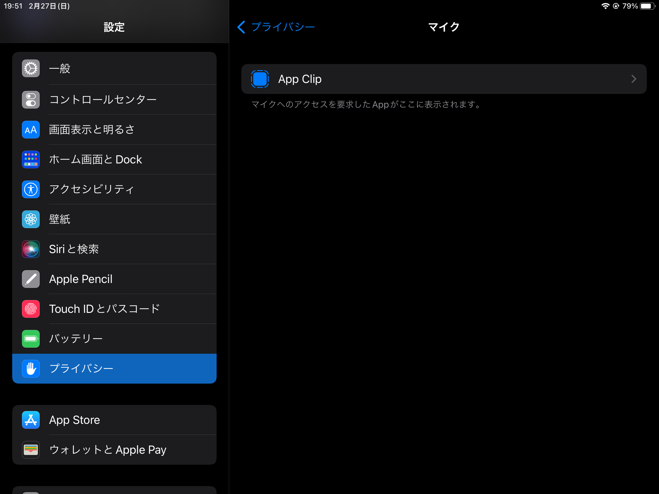 他アプリからアクセスを要求されてカメラやマイクを許可しようとしたけど許可する項目なくてどこにあるとかわかる人いたら教えてください。端末はiPad7世代です。スクリーンタイムとか関係あるんですかね。