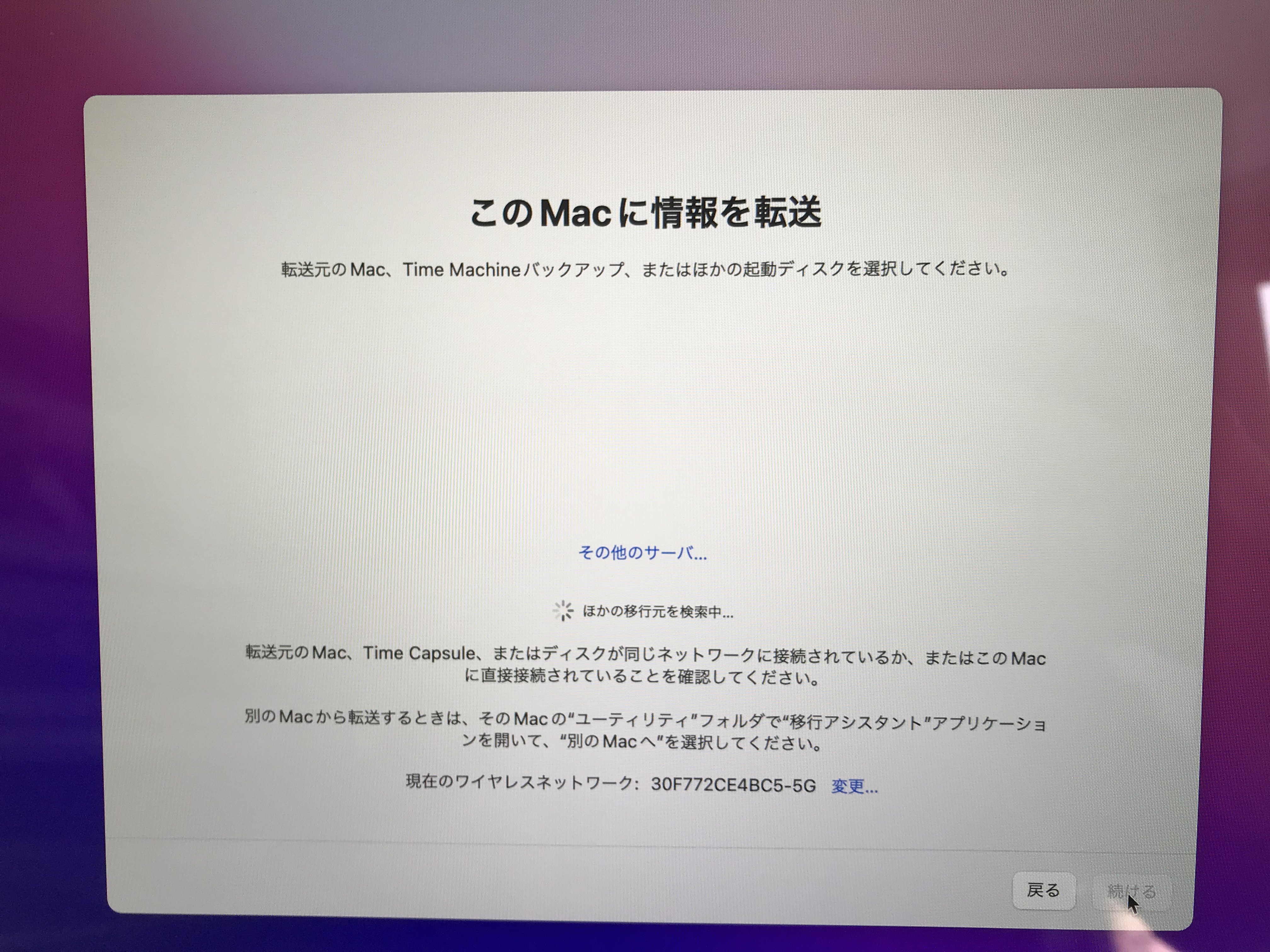 あらたなMacBookへデータを移す移行アシスタントが「認証できません」とエラーが出てしまいます