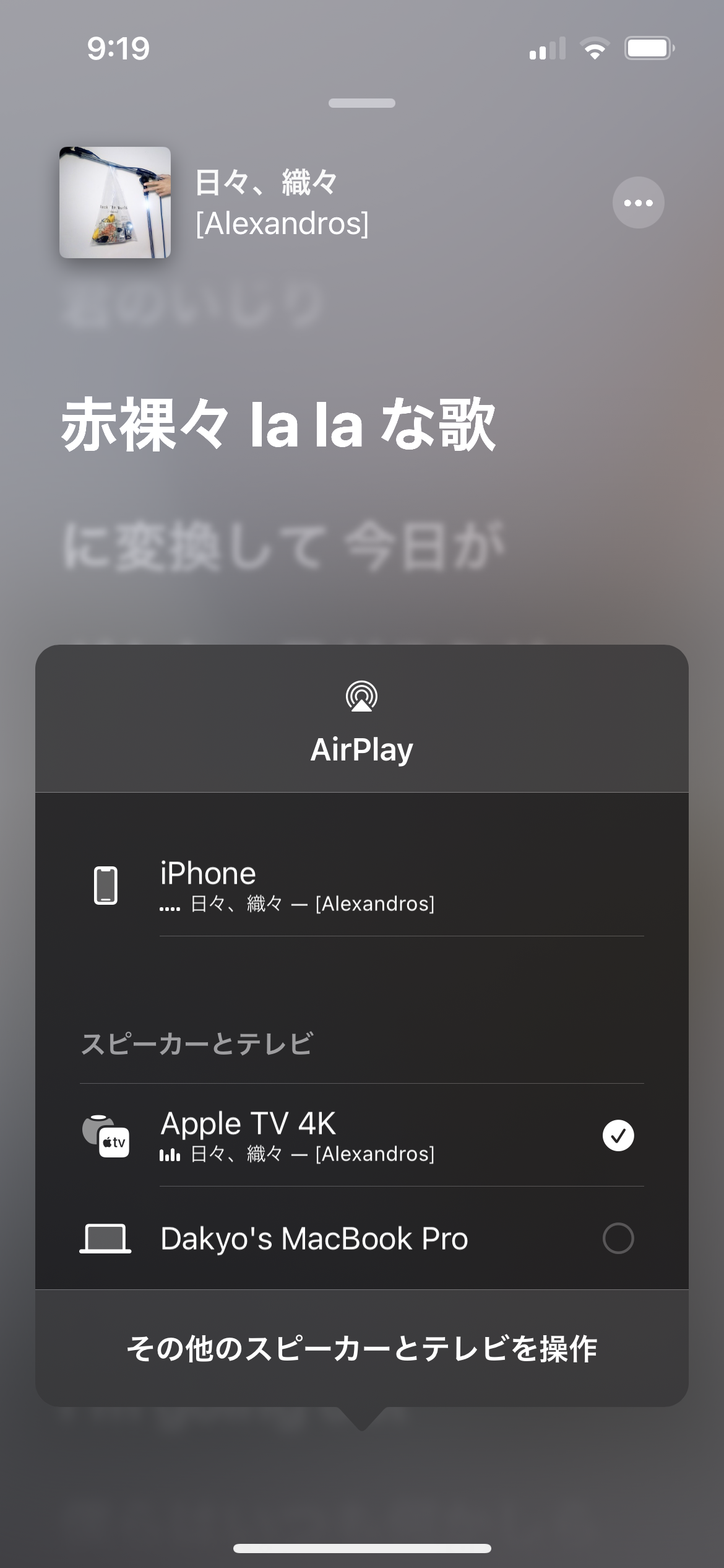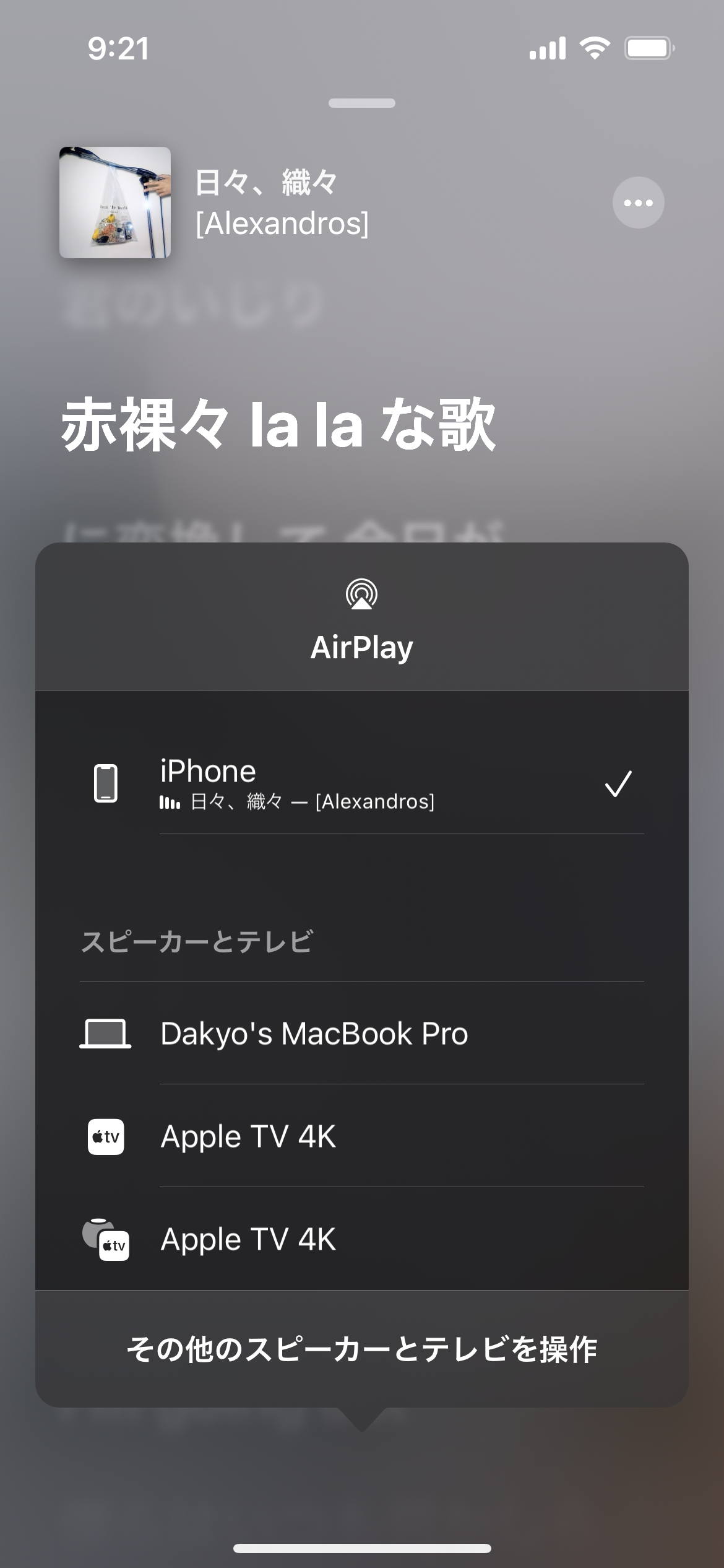 また、下記画像は2枚目がWi-Fi接続時、3枚目がEthernet接続時のiPhoneのミュージックアプリの画面なのですが、Ethernet接続時はなぜか2つのApple TV 4Kが表示されます。