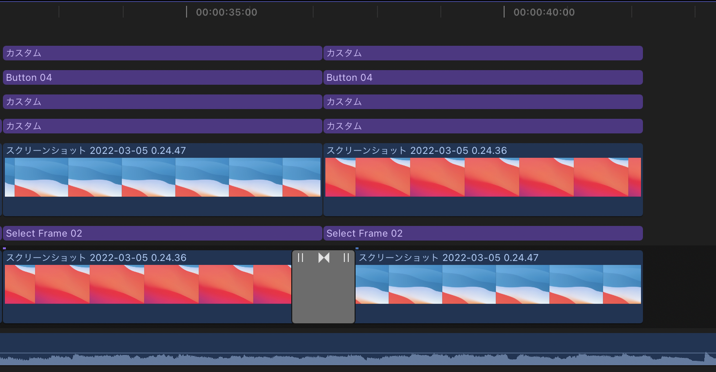 あと、疑問に思っているのはタイトルに対してトランジションをかけた時に、隣り合うクリップやタイトルがなくてもトランジションをかけれるのか、ですね。見えないクリップみたいなのを作ればいけるのかな??