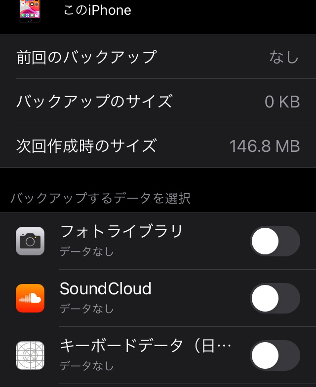iCloudバックアップにて次回作成時のサイズが減らせず、バックアップが出来ない状態です。