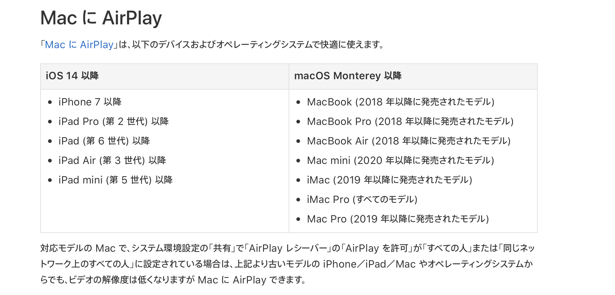 macOS 12 MontereyではiPhoneやMacの画面を別のMacに映し出す「AirPlay to Mac」が利用可能。