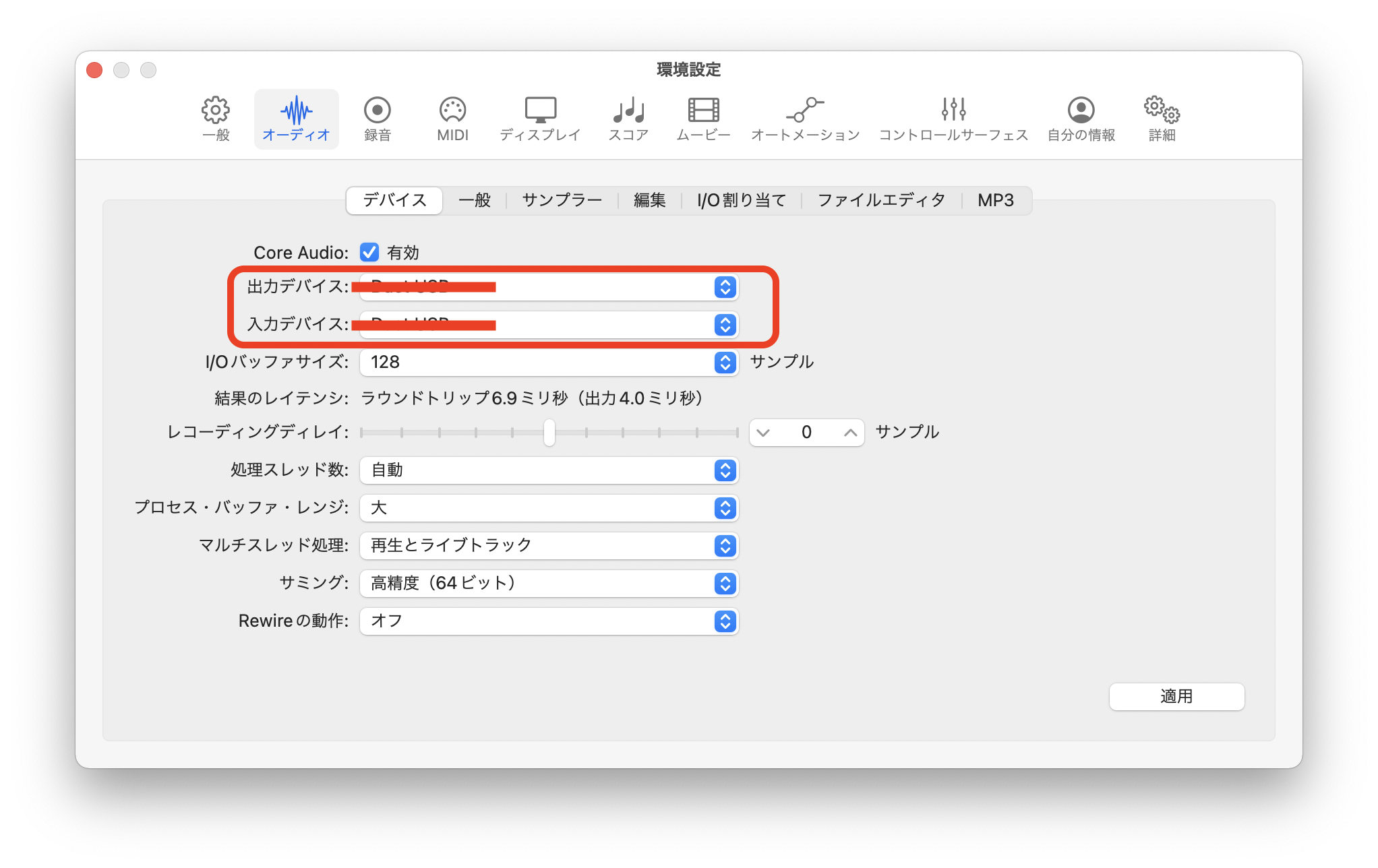 再起動後はシステム環境設定>サウンド画面>入力/出力共に