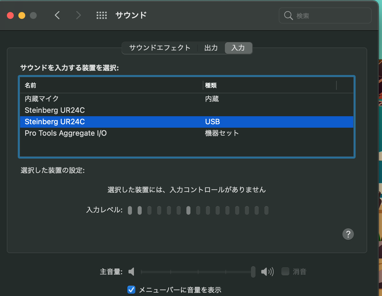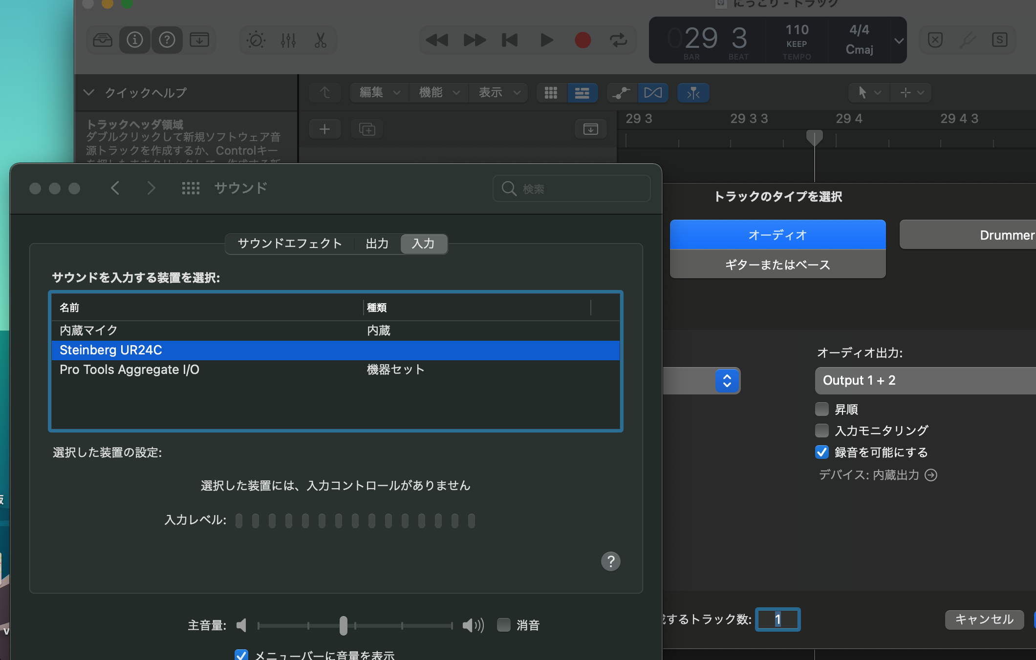 Steinberg USBと表示され、マイクの反応も出ますが、Logic proを