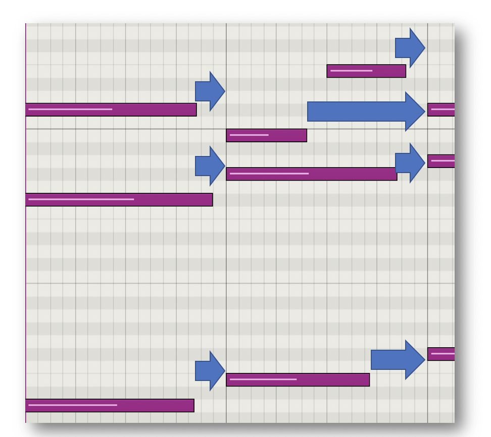 ありがとうございます。例えば、画像のようにバラバラの長さのノートを矢印のグリッド線のところまで伸ばす、ということを一気にできる方法があるか、知りたいです。