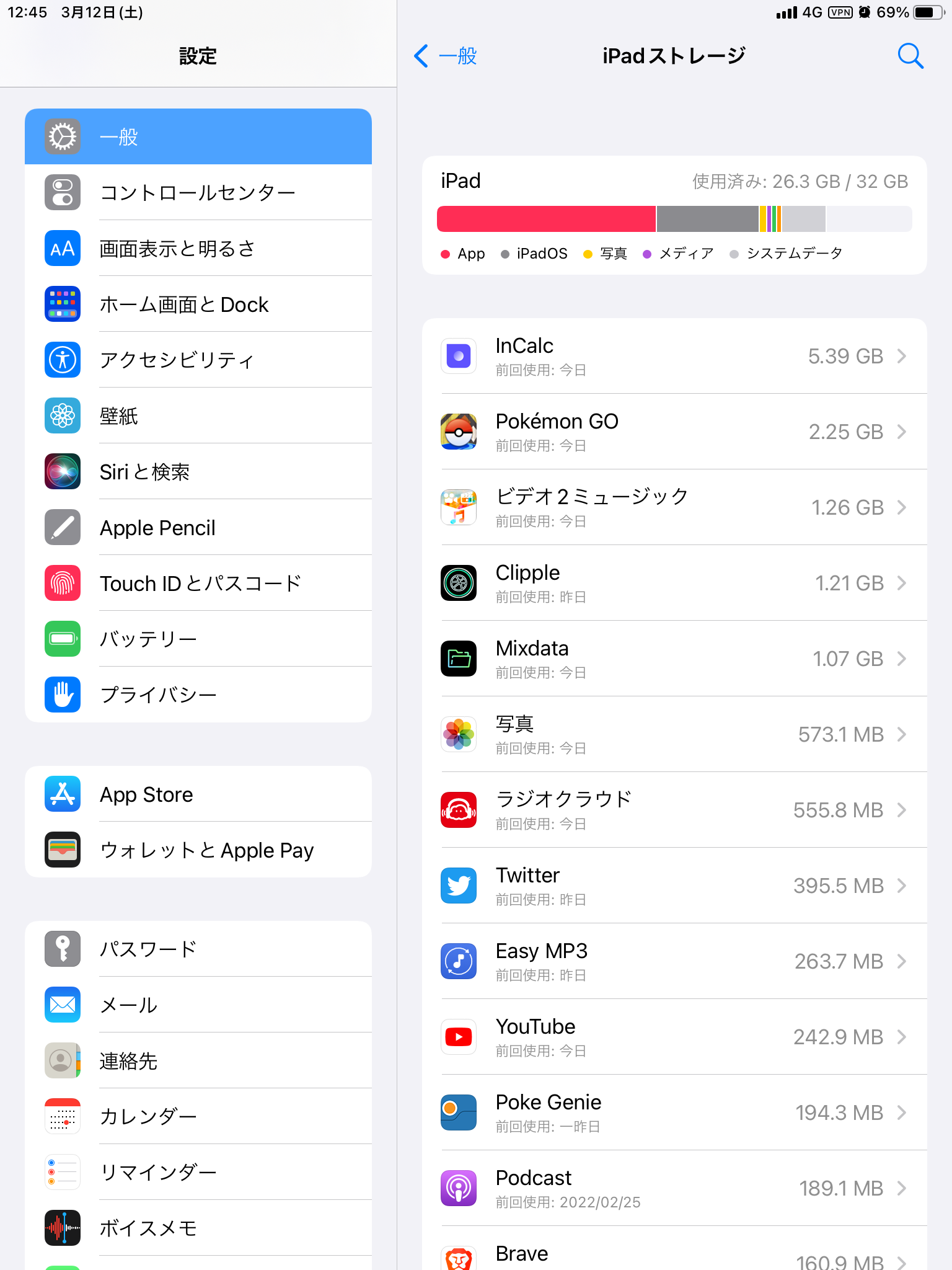 そもそも、iPadのモデルやiOSのバージョン、容量と空き容量はいくつでしょうか?