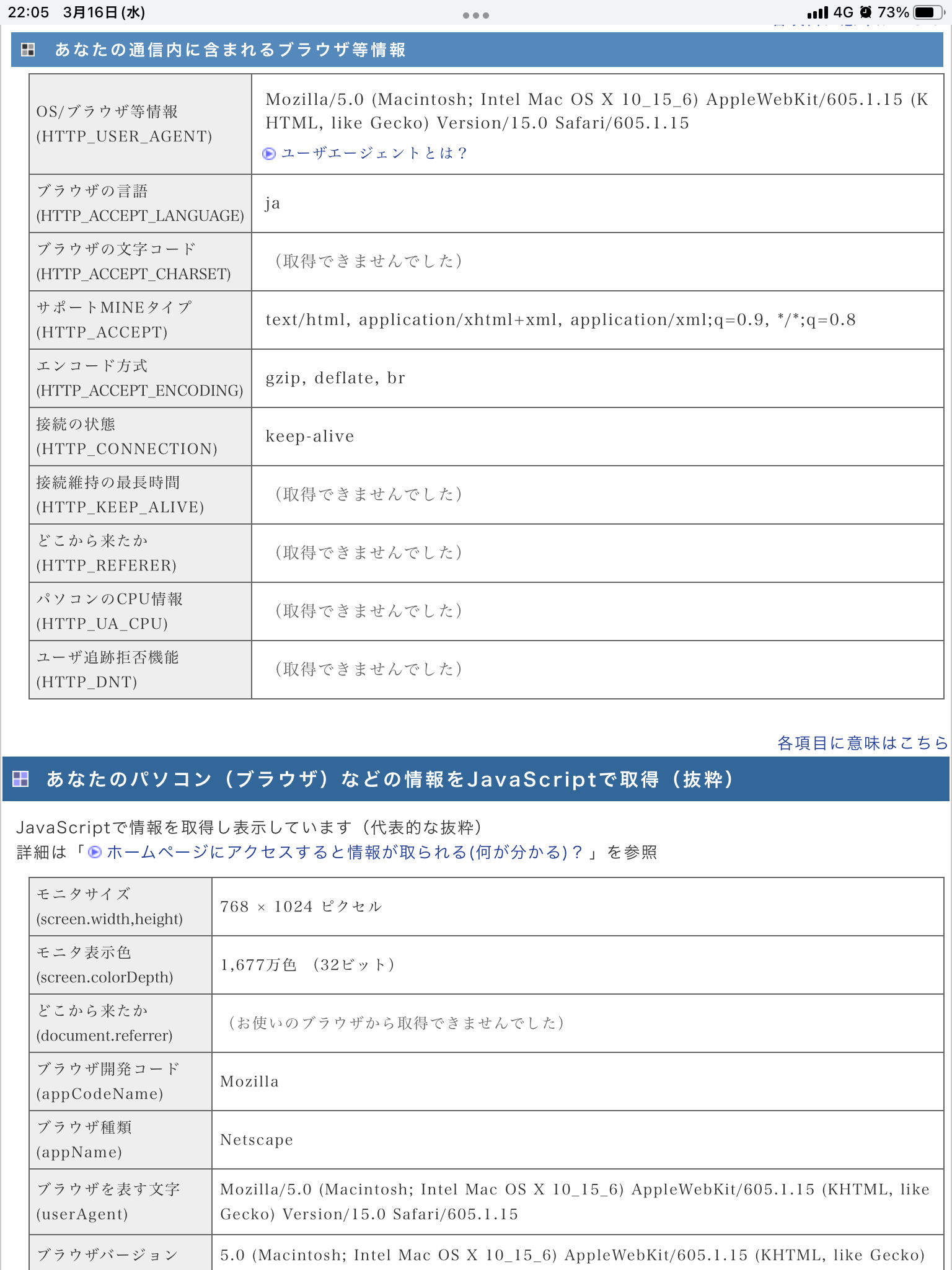 > iPhone で調べるとデバイスとブラウザは正確に表示