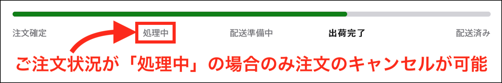 (ご注文状況が「処理中」以外の場合には、ご注文のキャンセルを行う事は出来ません)