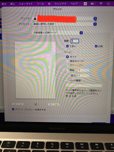 印刷ダイアログボックスの一番下が隠れて見えません。