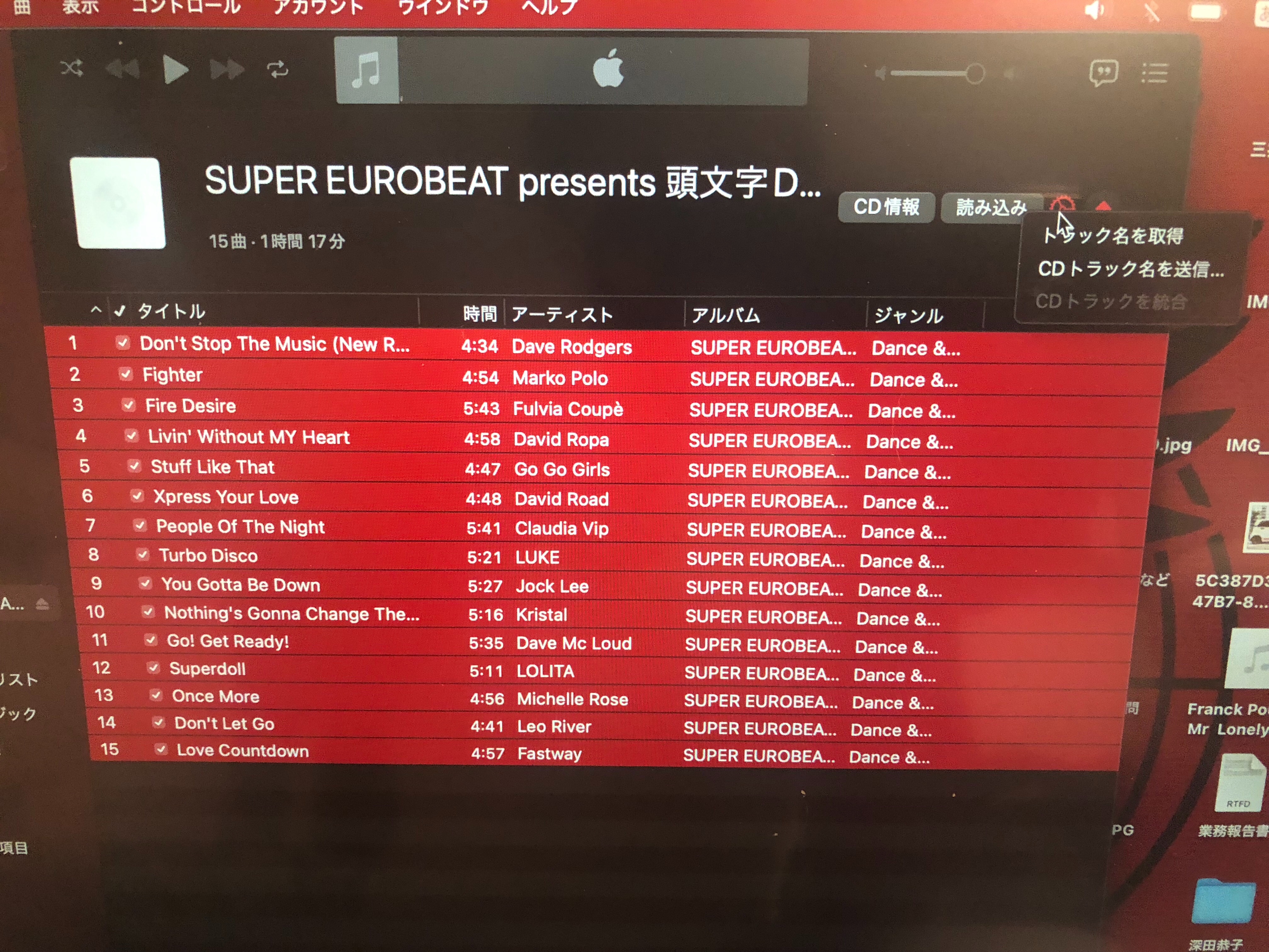 自分のMacではトラックを複数選択してもCDトラック統合がグレーの文字になって選べません。